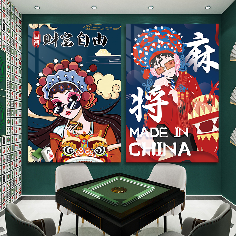 速发室装饰画国潮风馆包厢包间挂画布置墙面背景墙壁纸自粘贴
