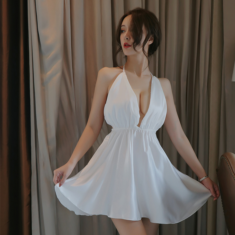 法式挂脖连衣裙纯欲透内衣女薄款性感深v睡衣心机睡裙低胸吊带裙