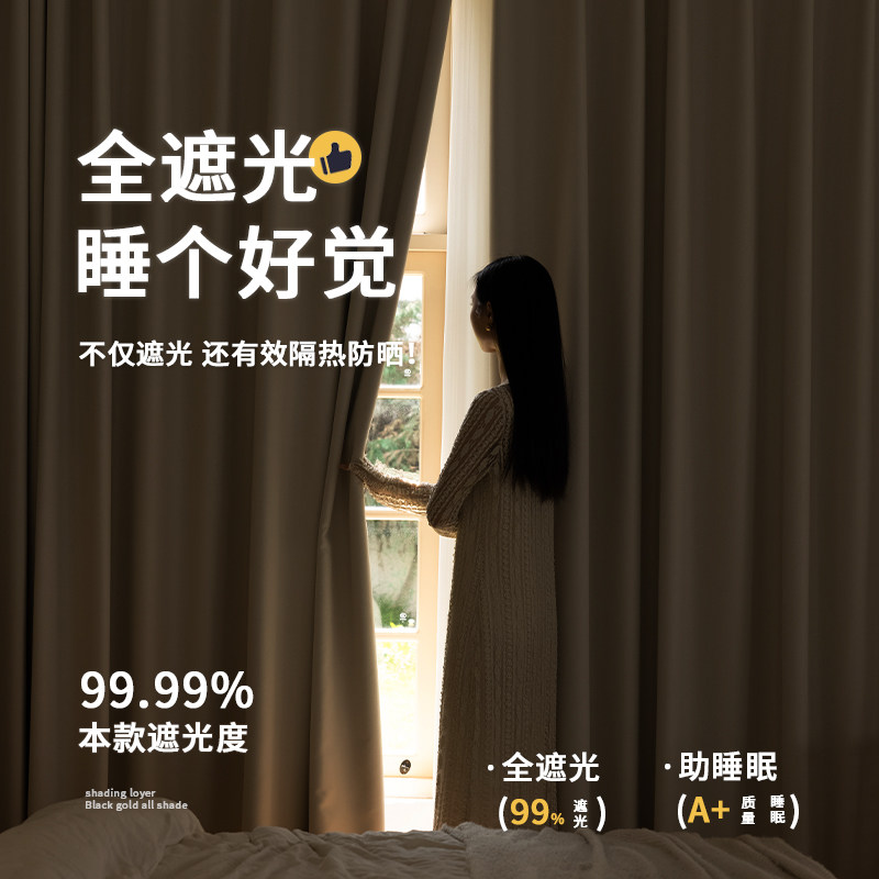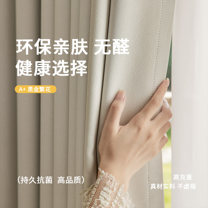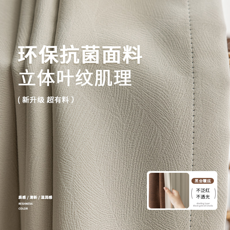 卧室窗帘遮光2025新款黑金雪尼尔奶油风客厅轻奢高级感抗菌遮阳布