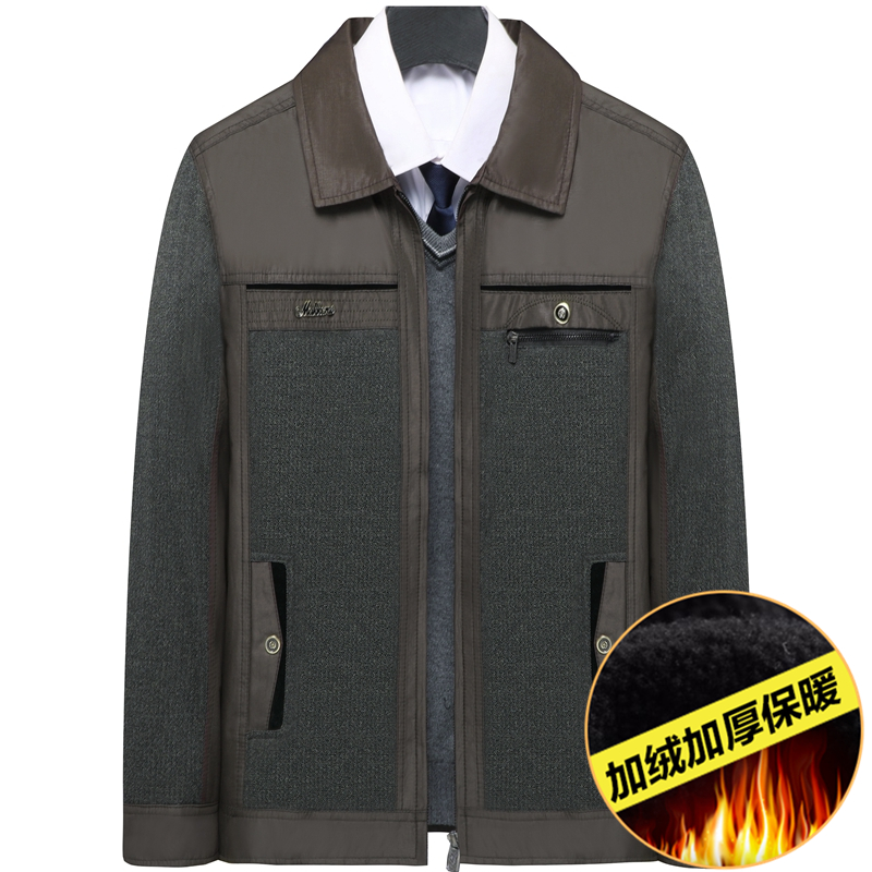 爸爸装外套秋冬季中年男士夹克衫加绒加厚款中老年人爷爷冬装棉衣