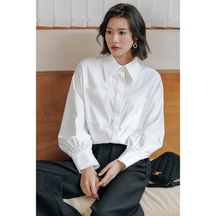 弥古法式白色泡泡袖衬衫女秋冬打底内搭上衣高级感宽松灯笼袖衬衣