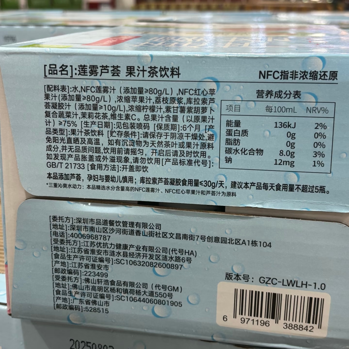 特价山姆代购 奈雪的茶 莲雾芦荟果汁茶饮料 330mL*15瓶NFC果汁