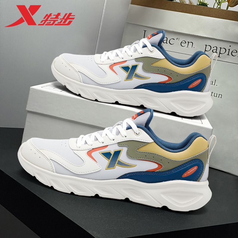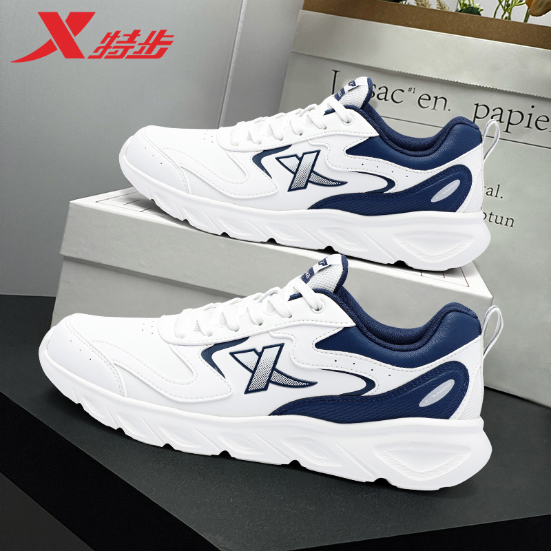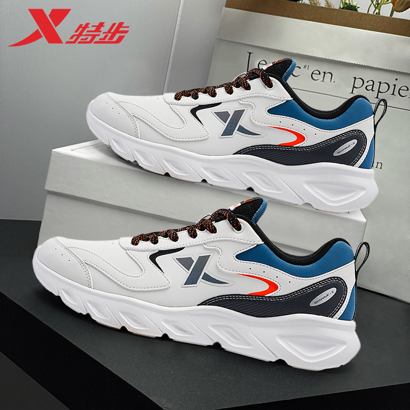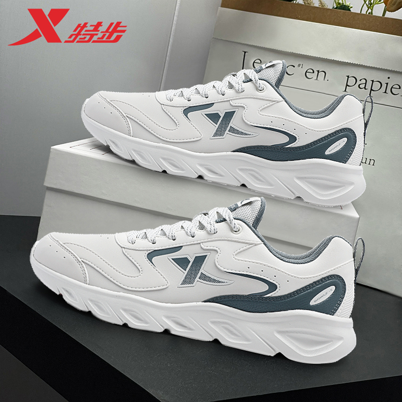 特步运动鞋男士百搭白色休闲鞋官方正品秋冬新款皮面防水减震跑鞋