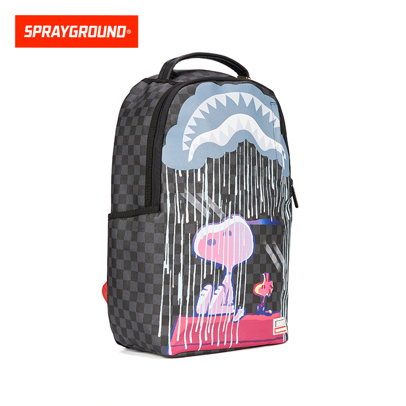 史努比联名 SprayGround鲨鱼嘴卡通双肩包潮流棋盘格男女学生书包