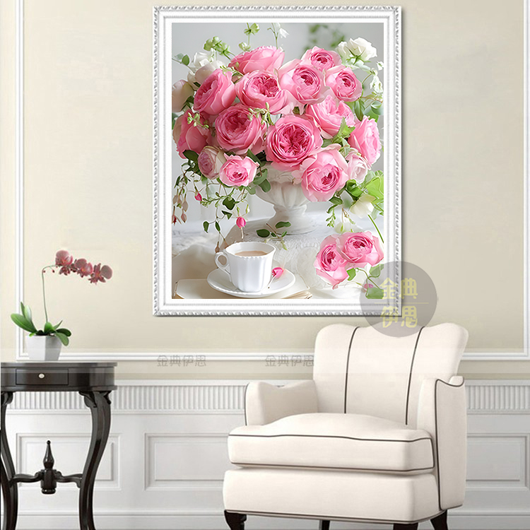 花卉钻石画2025新款玫瑰花瓶现代简约手工5d点贴钻十字绣餐厅满钻