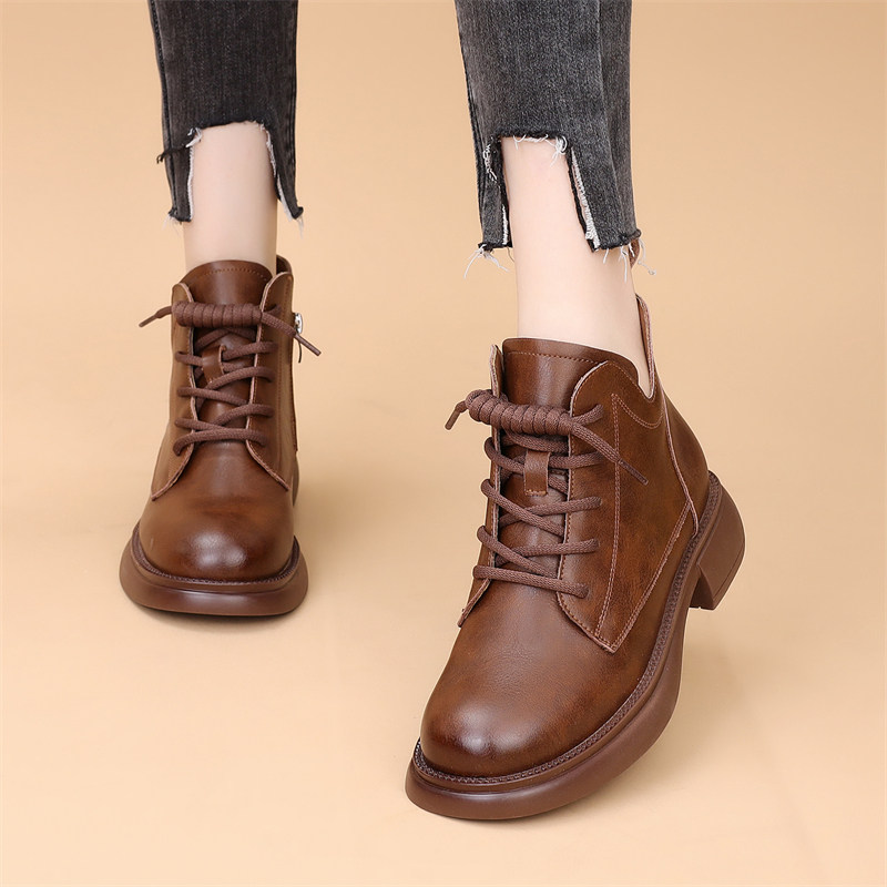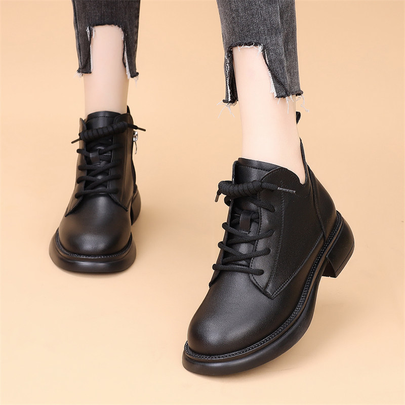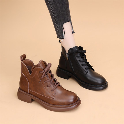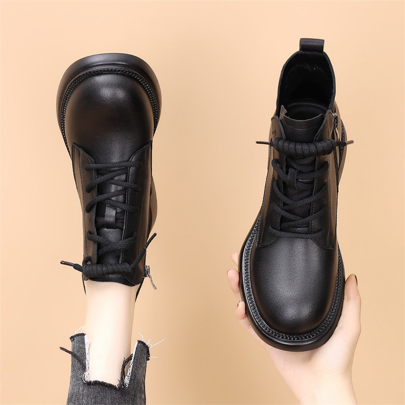 平底马丁靴女2025新款秋冬加绒复古英伦风厚底女短靴子大码41-43