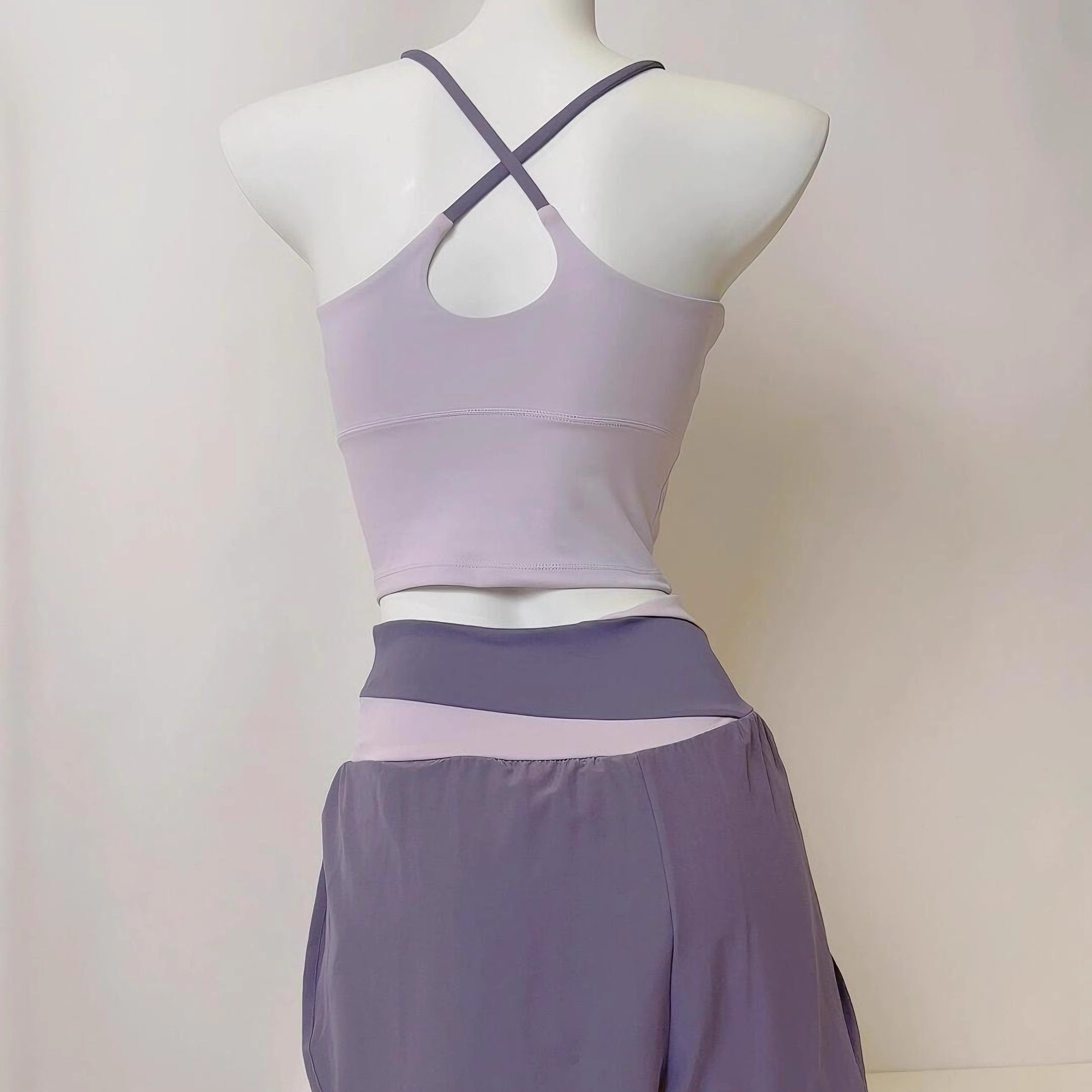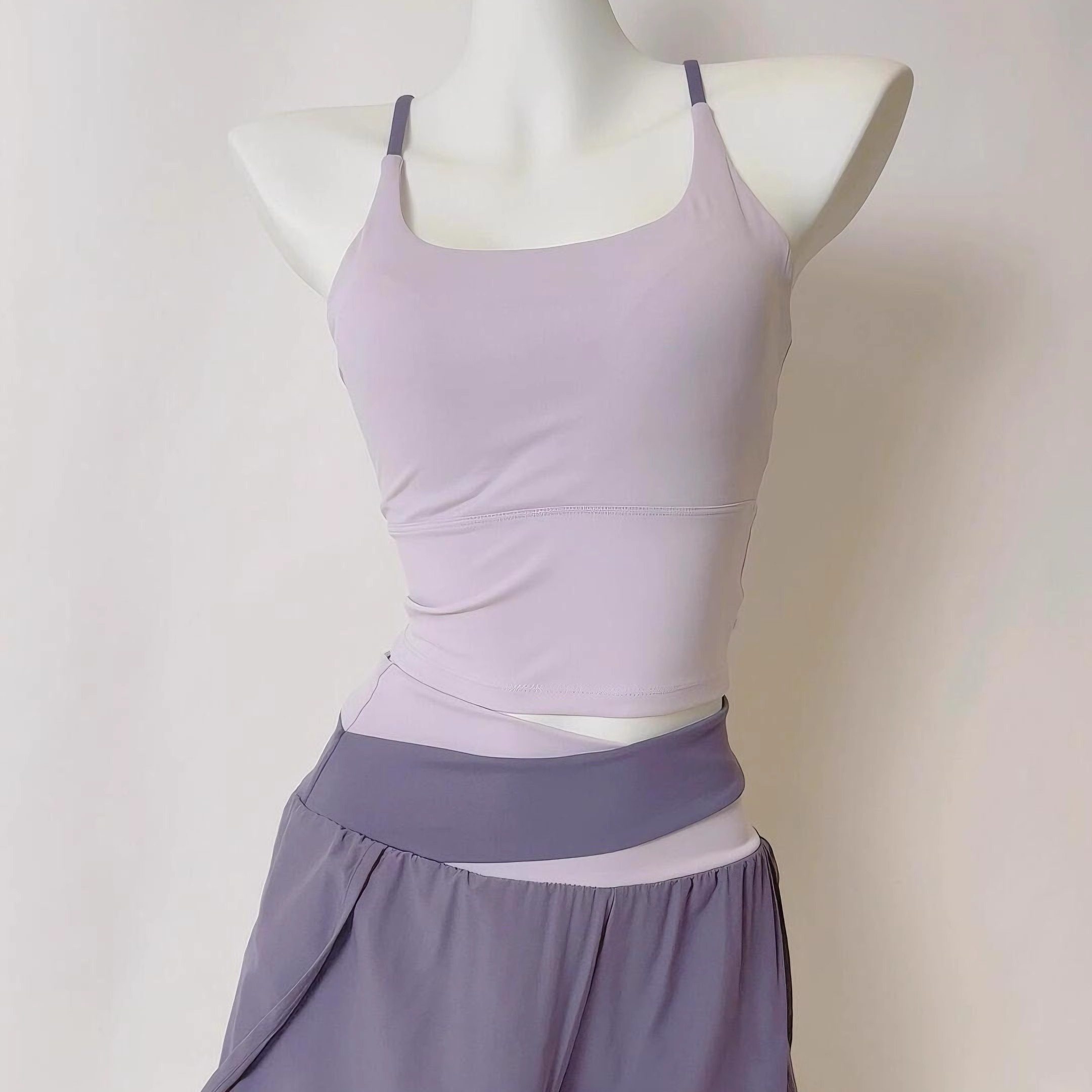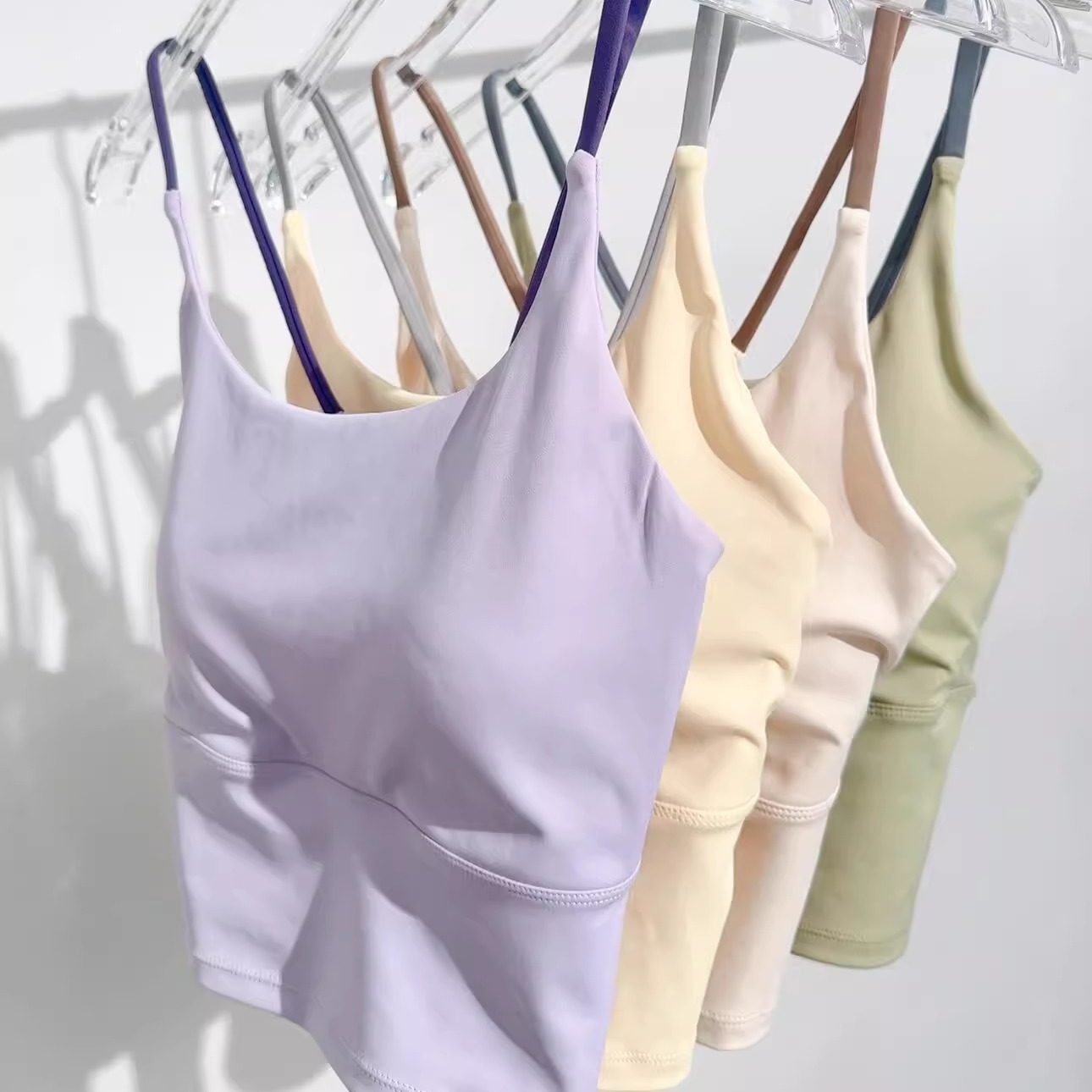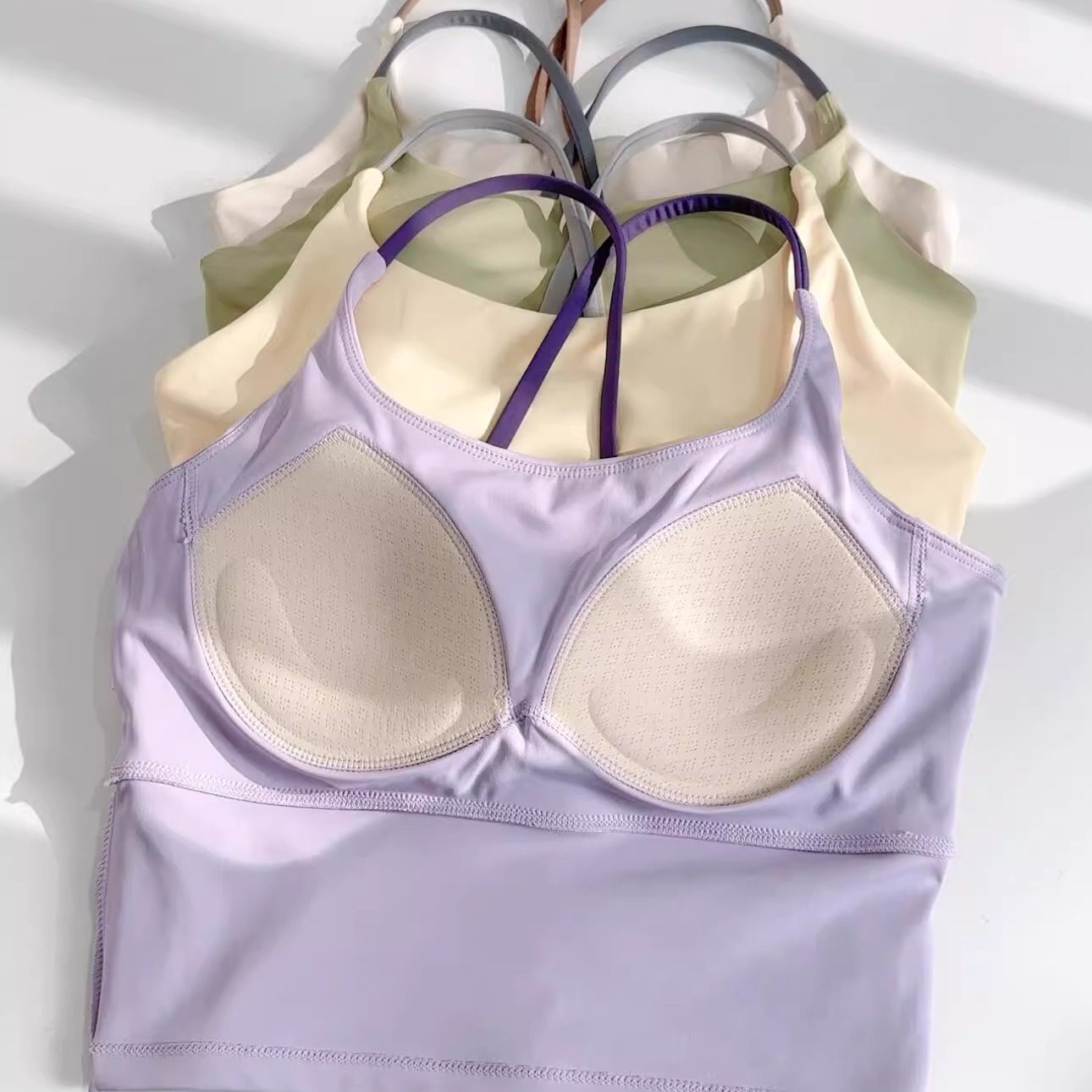 运动背心防震紫色吊带瑜伽服女跑步健身内搭带胸垫夏季打底上衣