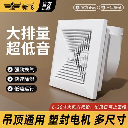 新飞排气扇卫生间排风扇大功率工程全尺寸吊顶吸顶静音浴室换气扇