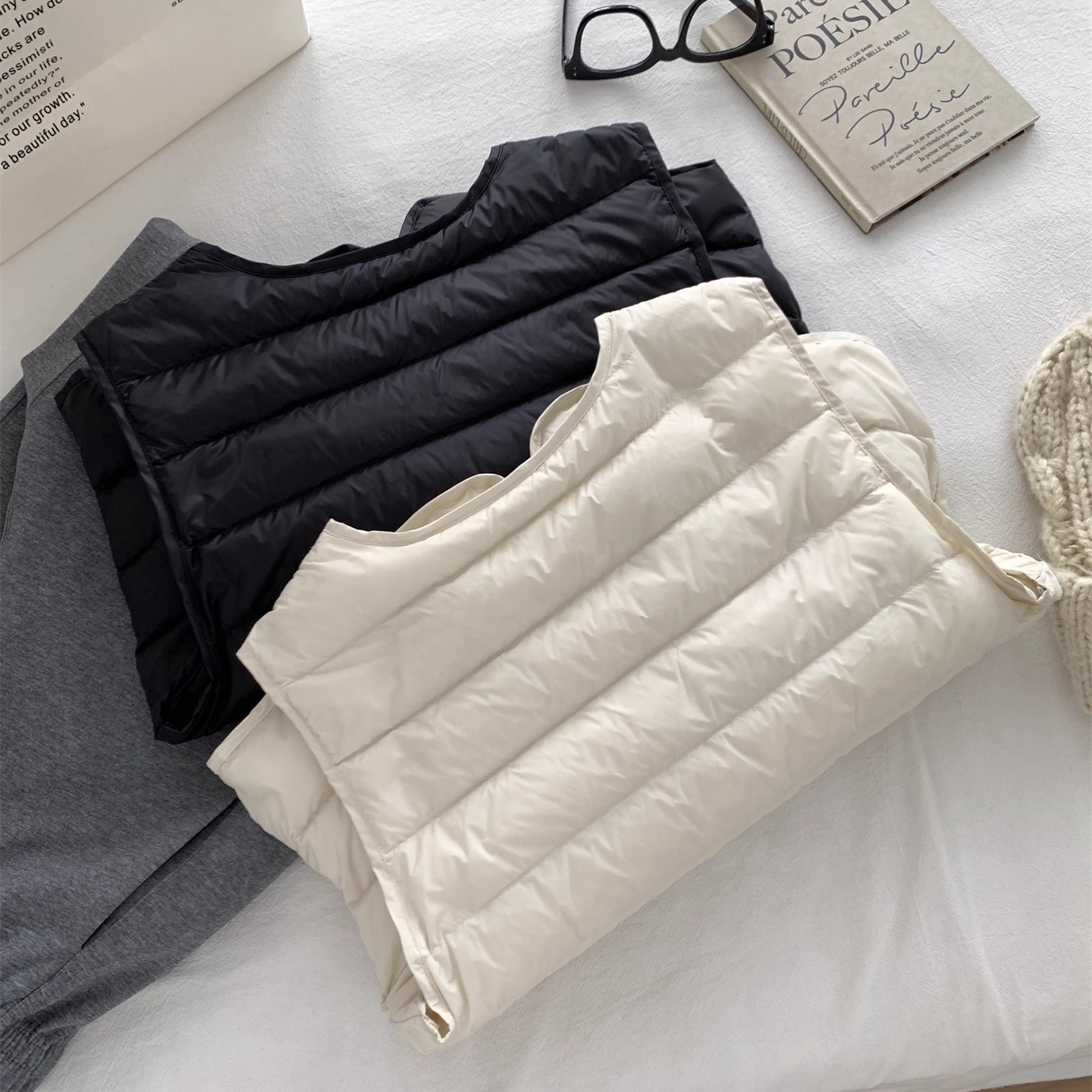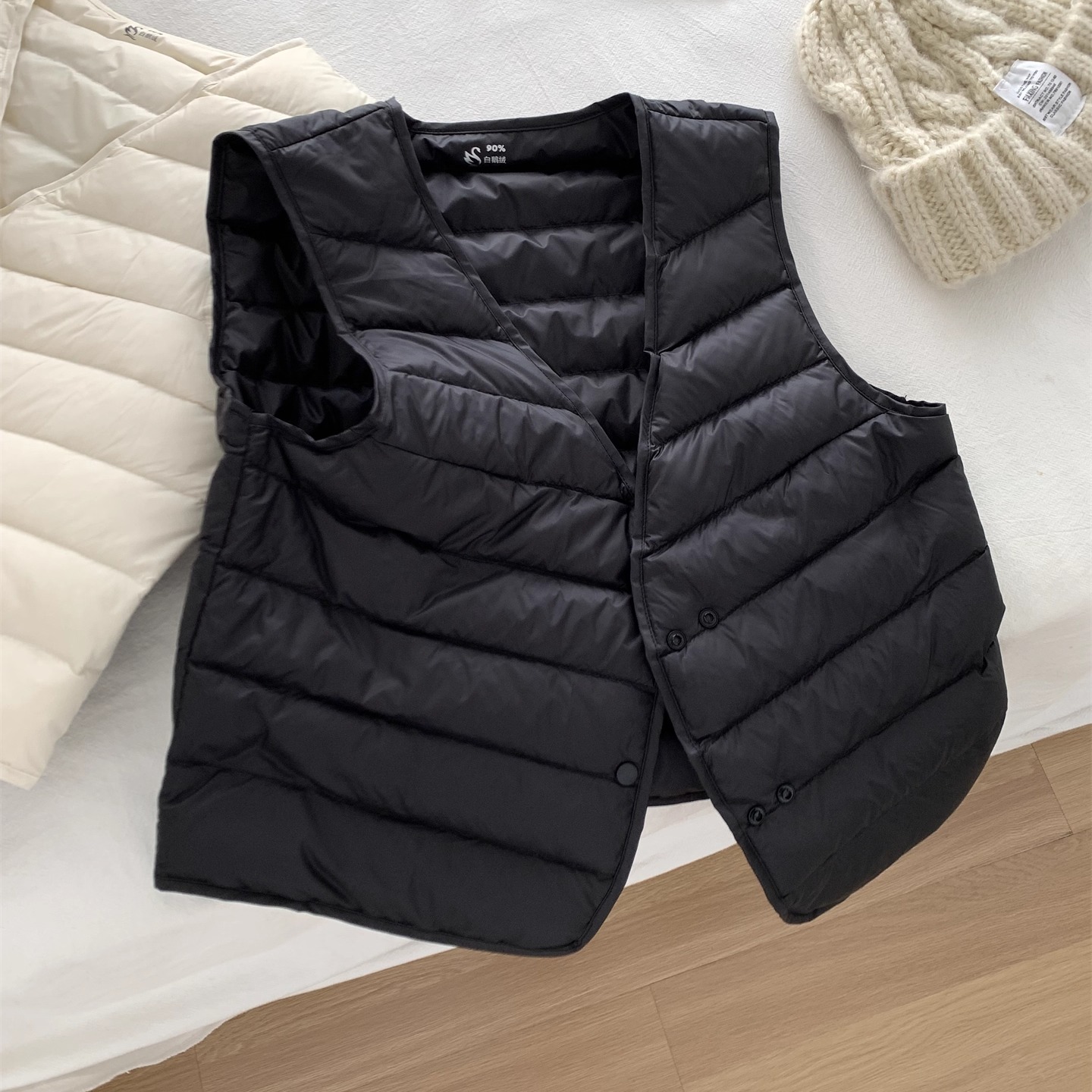轻便保暖V领羽绒背心女极简韩版90白鸭绒棉服内胆冬季马甲开衫
