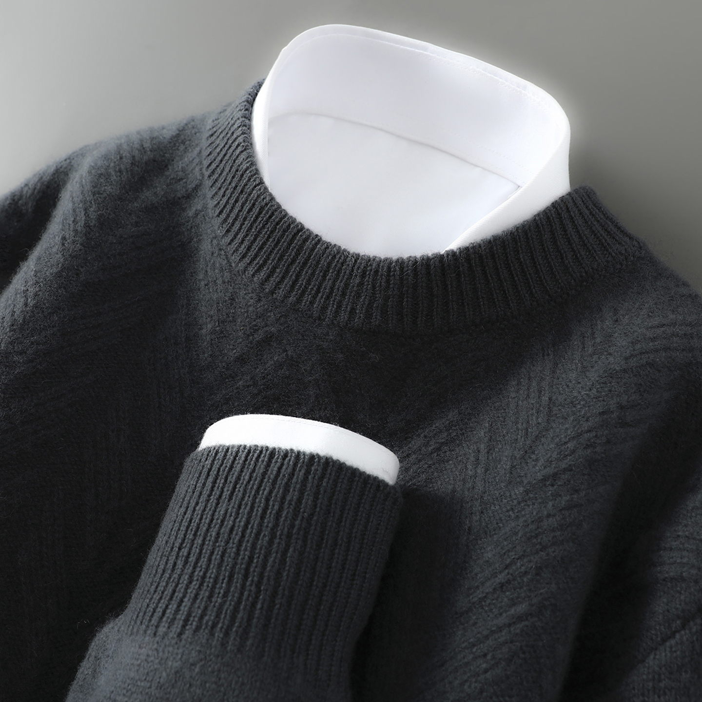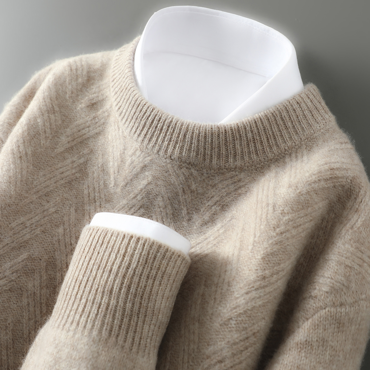 冬季新款100%纯羊毛衫男圆领加厚针织毛衣休闲宽松大码打底羊绒衫