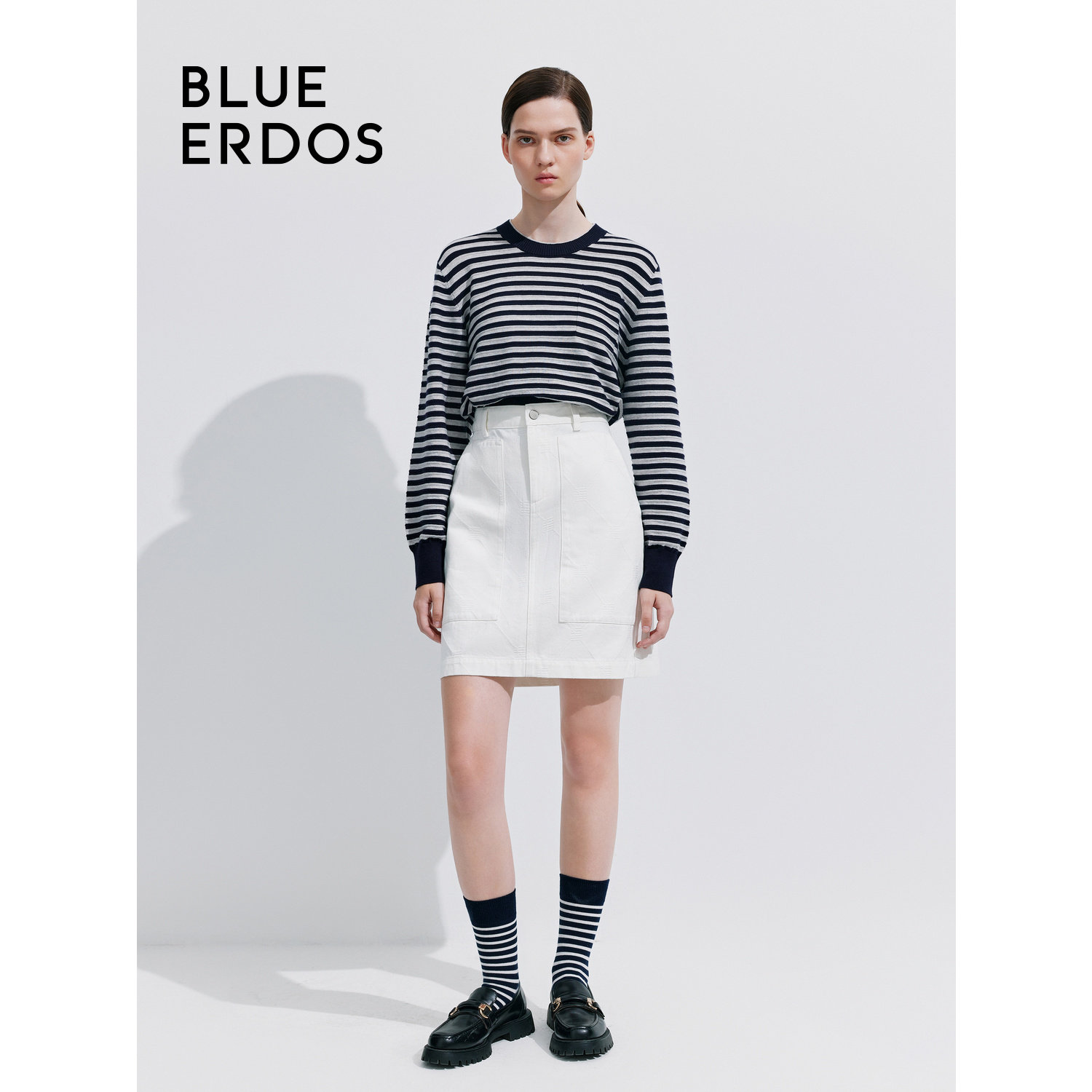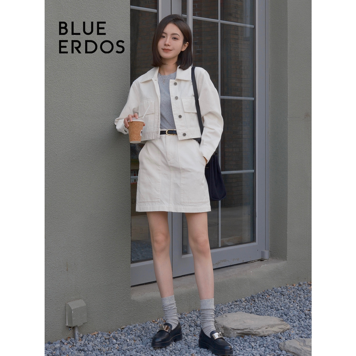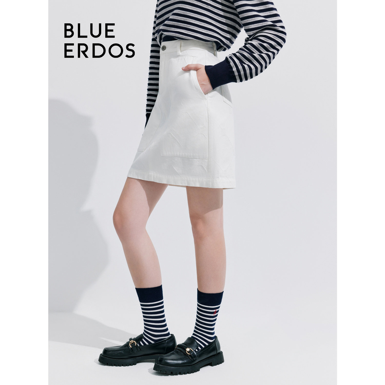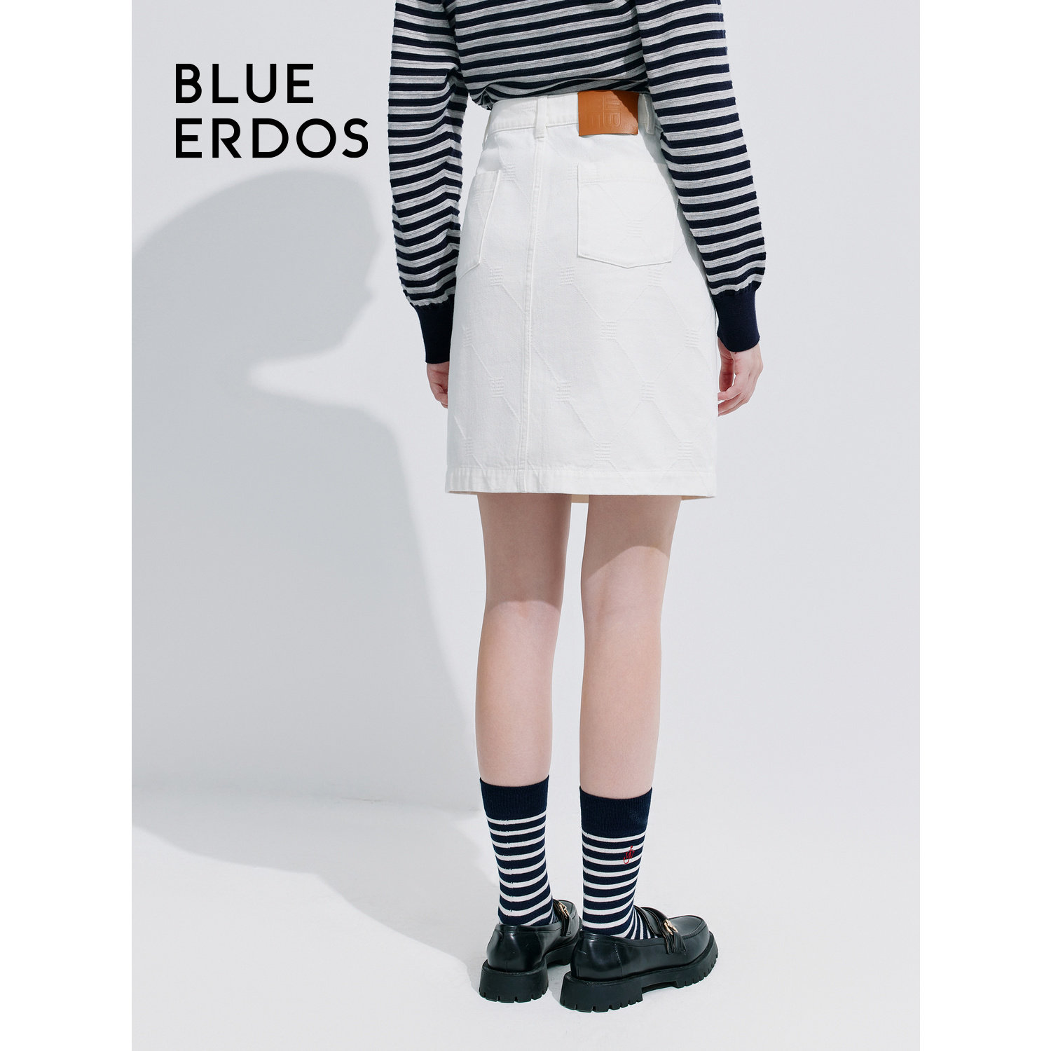 BLUE ERDOS简约通勤纯白H型全棉牛仔半身裙女B245M0027