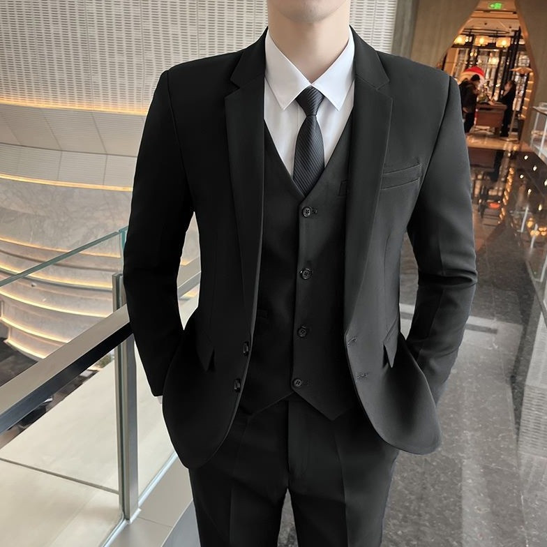 秋冬西服男士外套加绒加厚韩版修身潮流商务正装职业新郎西装套装