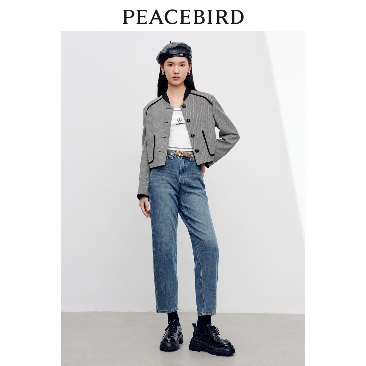 【商场同款】太平鸟女装年秋季新款舒适哈伦牛仔裤A1HAD3104