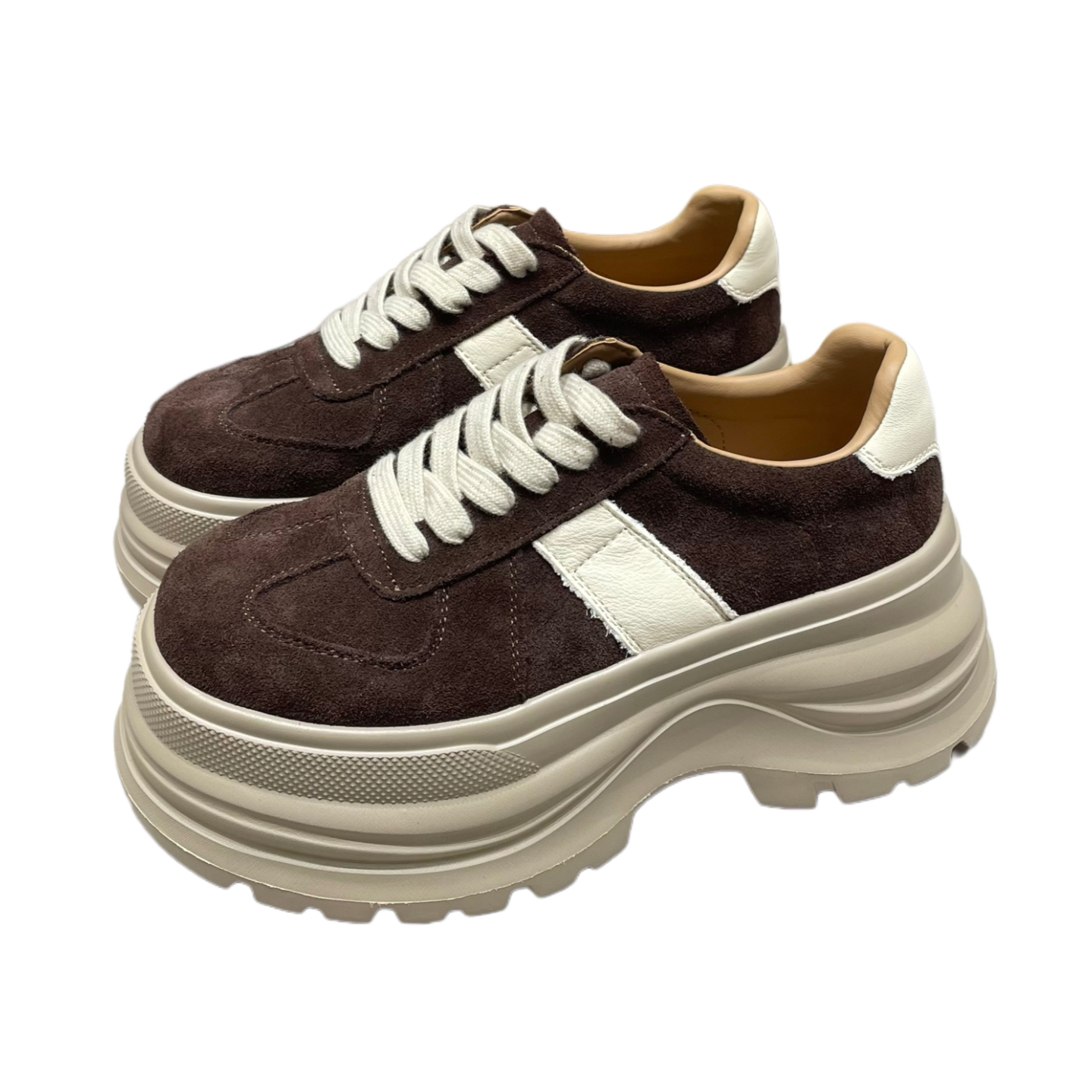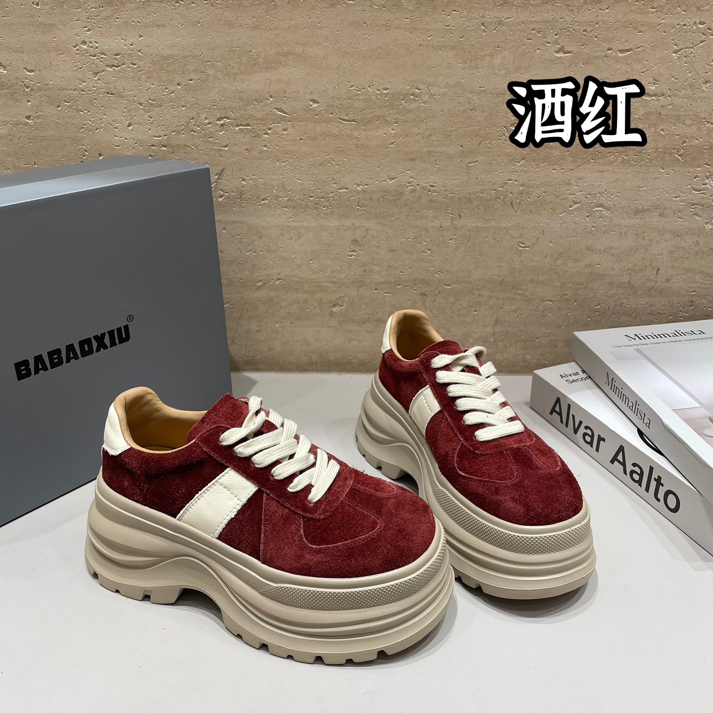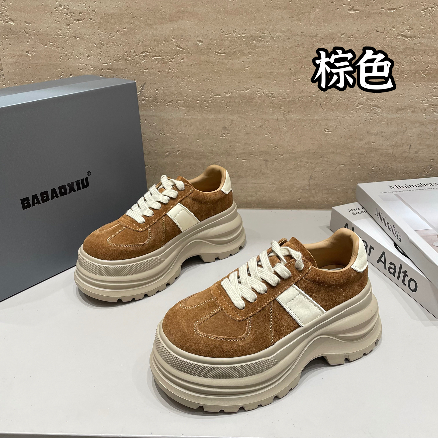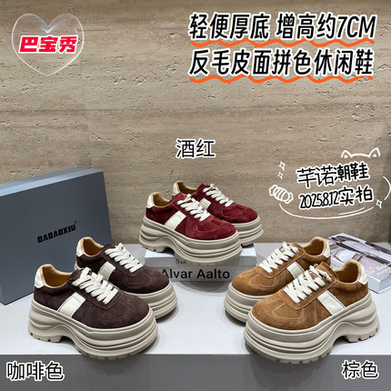 超轻松糕厚底反毛皮休闲鞋女2025秋季新款百搭小个子增高拼色单鞋