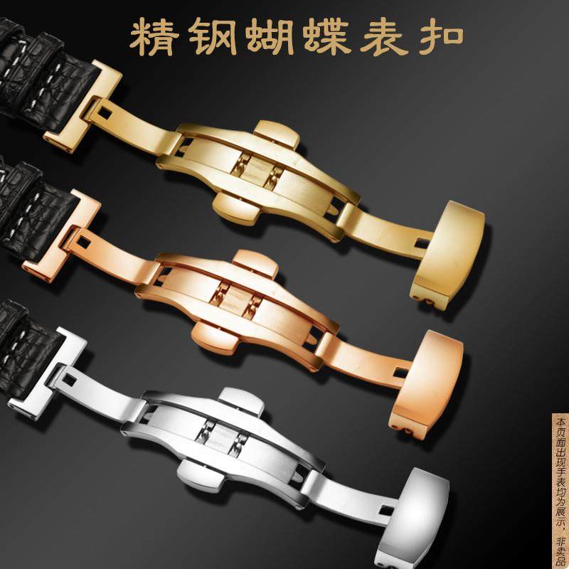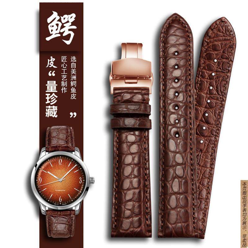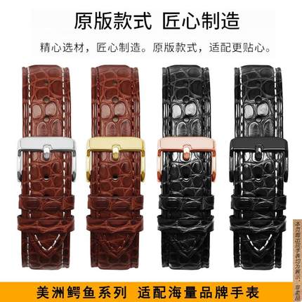 原厂代用双面鳄鱼皮手表带浪琴天梭欧米茄蝴蝶扣表链男19202122mm