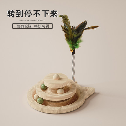 实木猫转盘剑麻绳猫抓柱爬柱自嗨逗猫棒薄荷球小猫解闷猫玩具用品