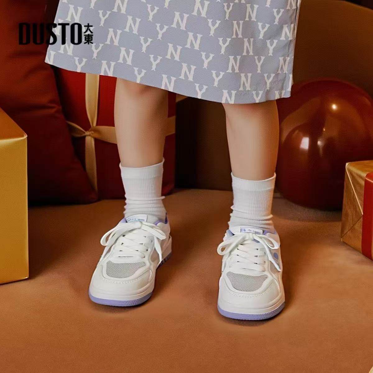 大东24春季新款休闲男女中大童鞋小白鞋透气网面运动鞋24C1492