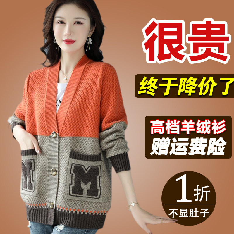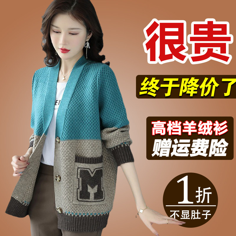 鄂尔多斯市羊绒毛衣外套女士春秋新款宽松大码中老年妈妈针织开衫