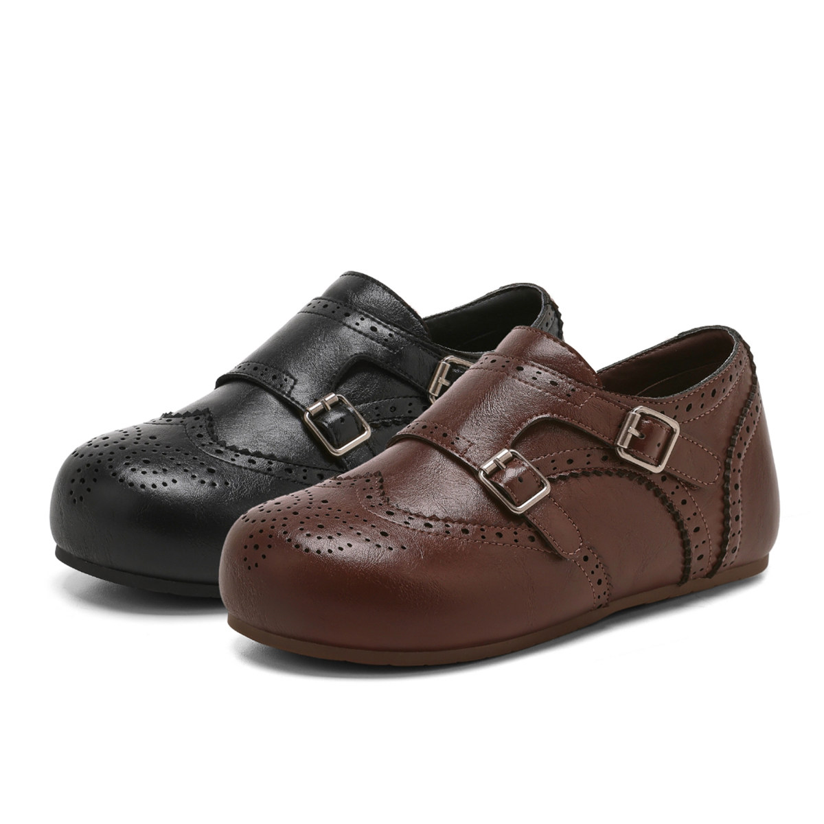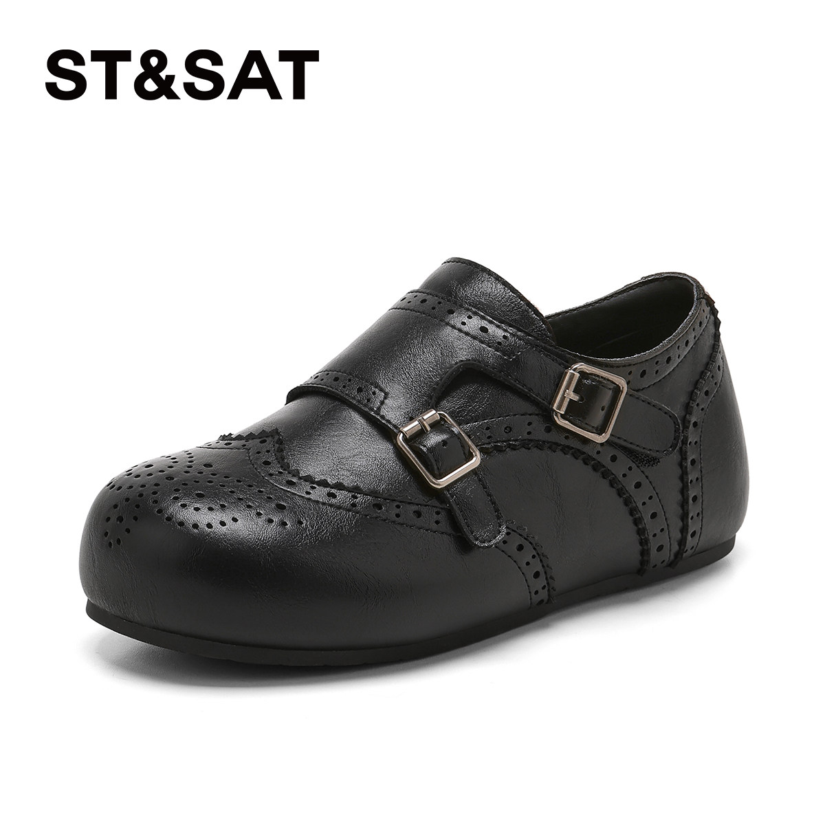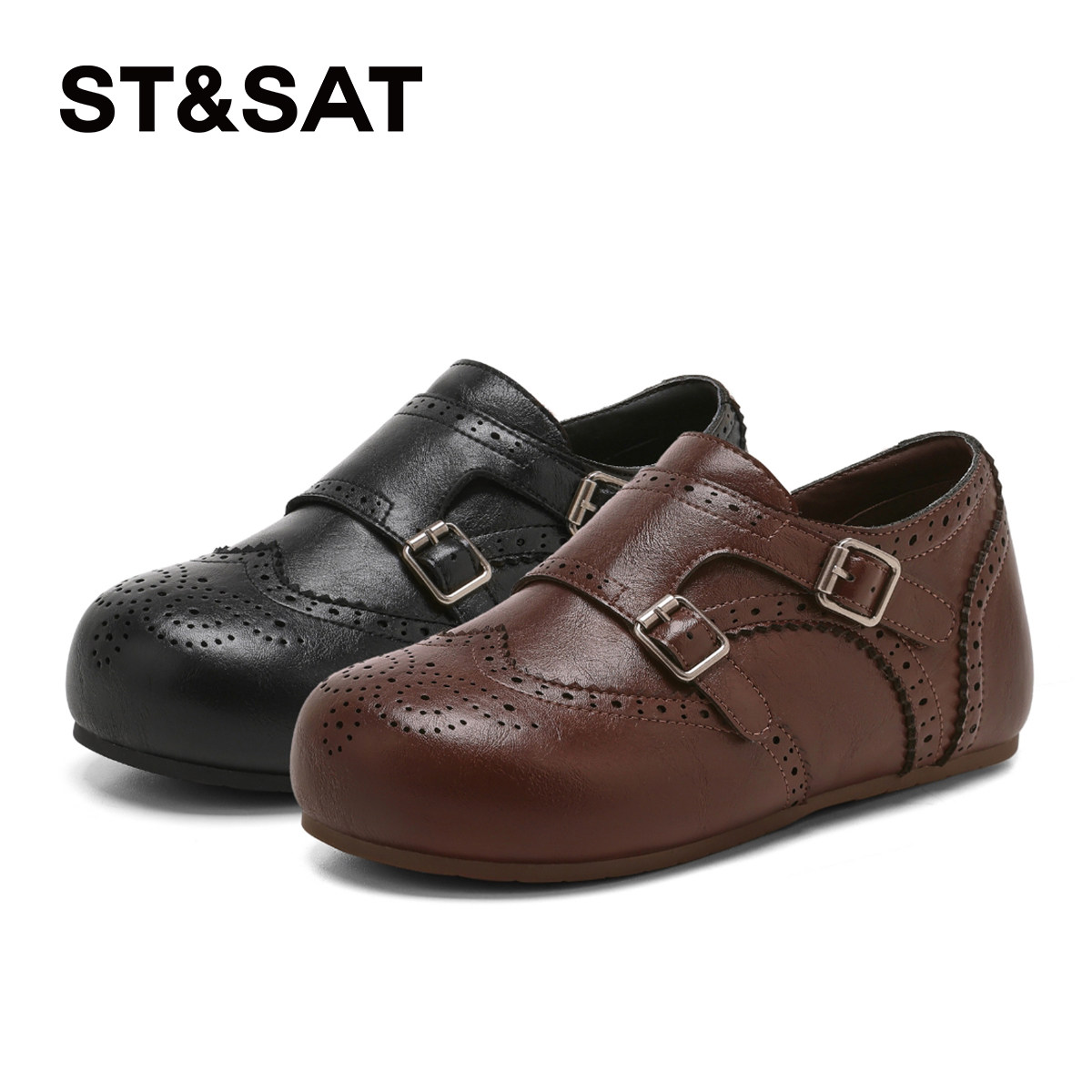 星期六软底勃肯鞋女2026新款春季布洛克雕花皮带扣平底复古乐福鞋