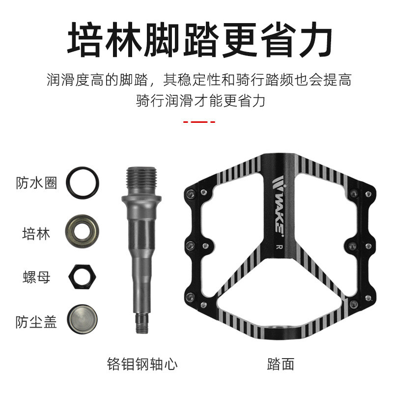 WAKE自行车脚踏 铝合金快拆踏板山地车轴承脚蹬防滑脚踏单车配件