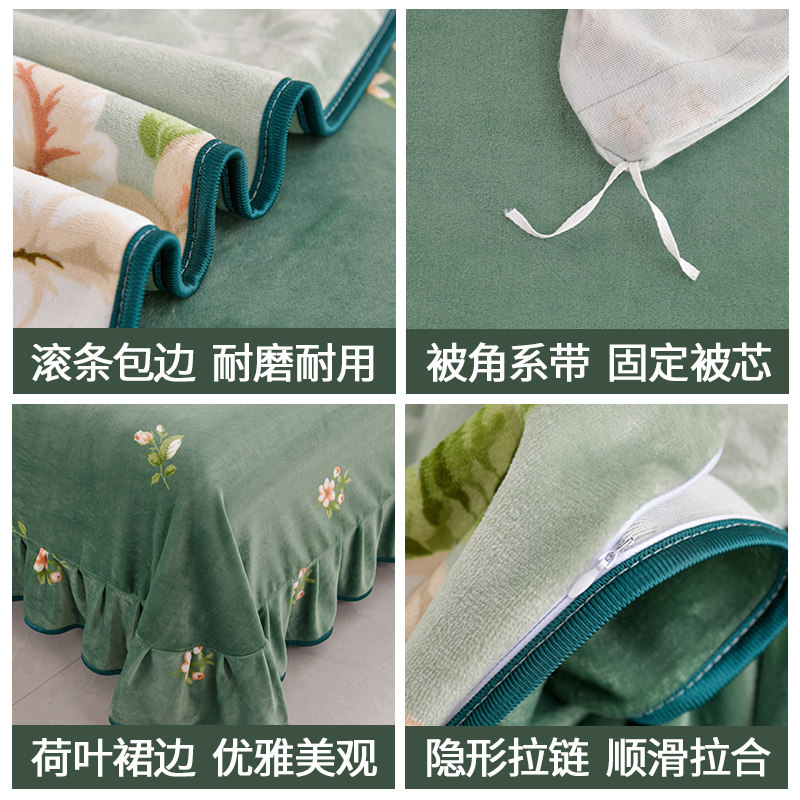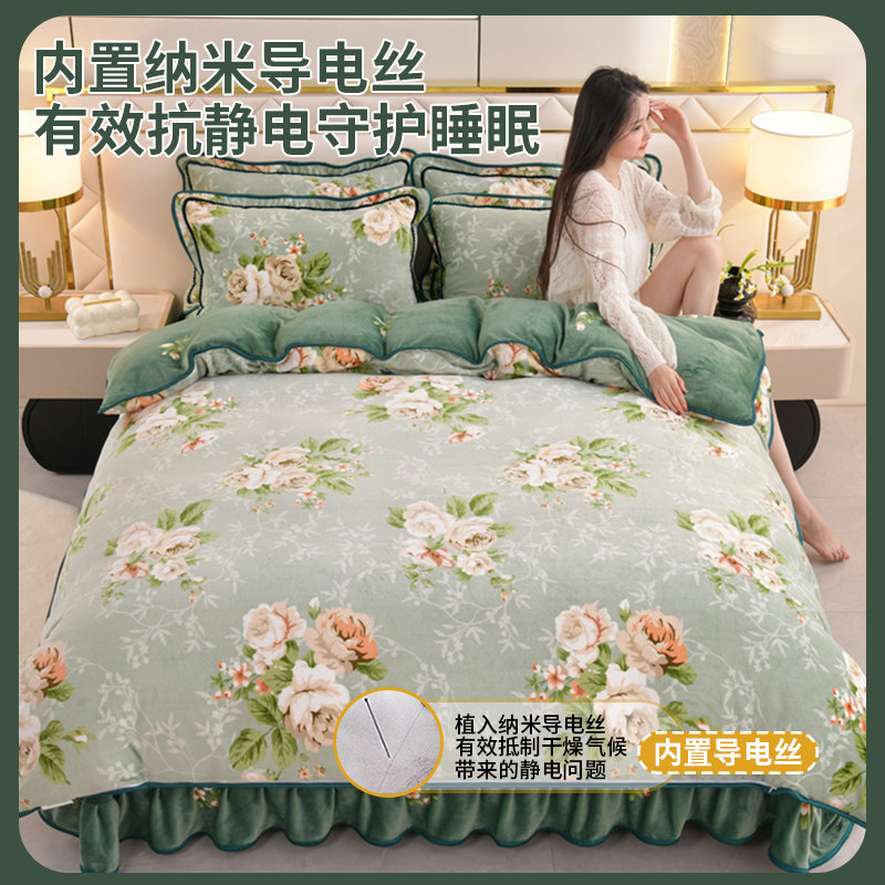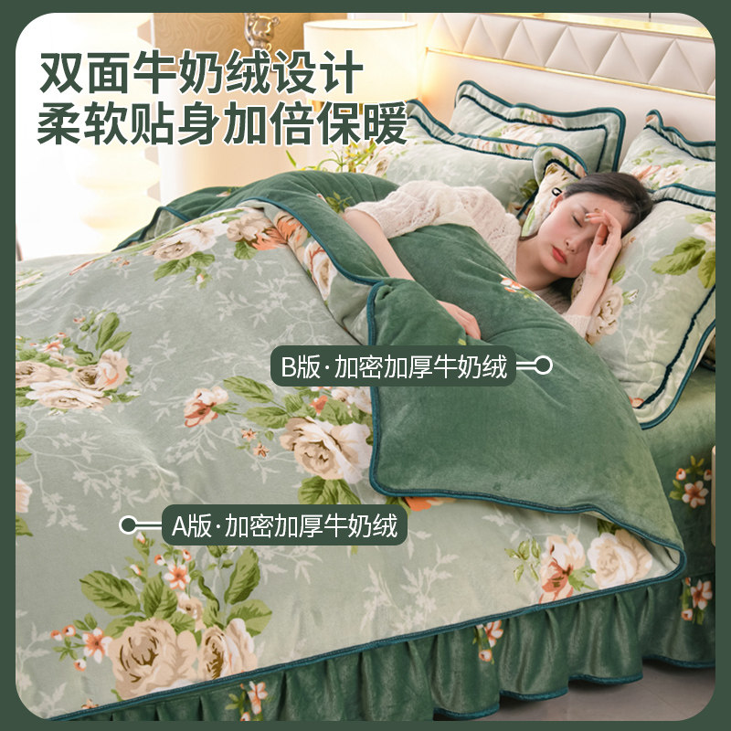 加绒牛奶绒四件套双面加厚珊瑚绒被套法兰绒床单床裙冬季床上用品