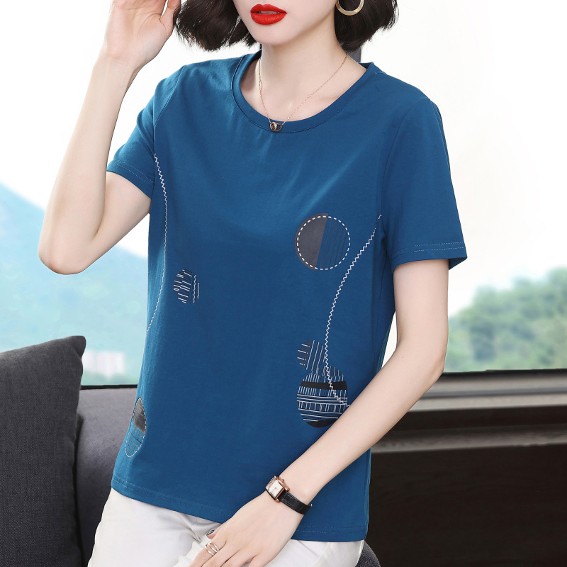 纯棉短袖t恤女 宽松上衣2021夏装新款中老年洋气半袖小衫妈妈衣服