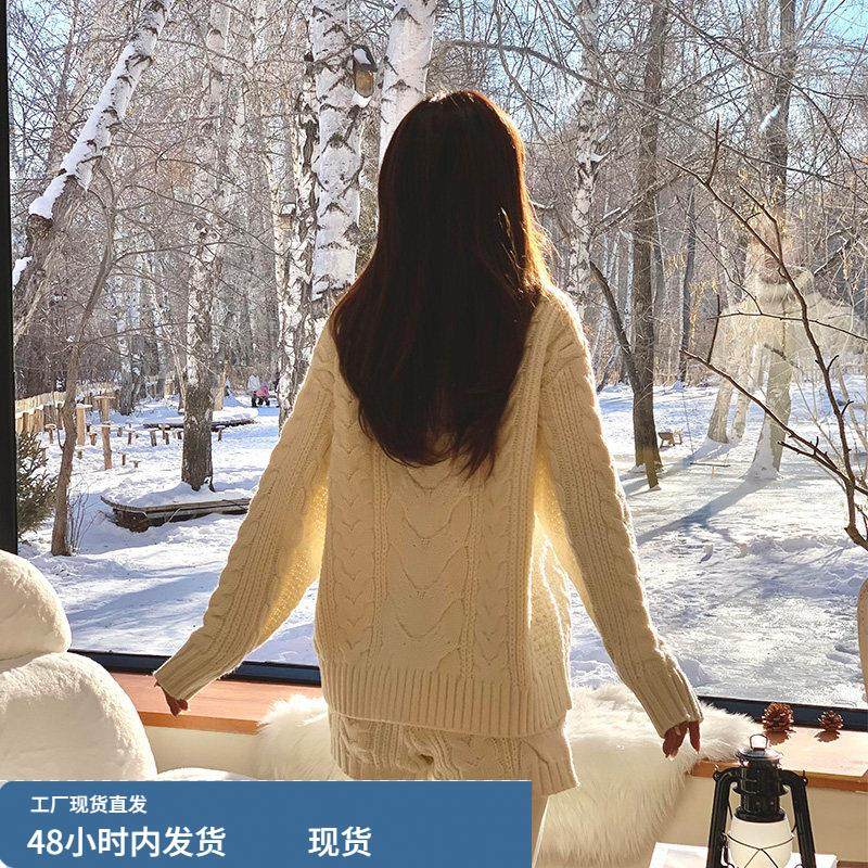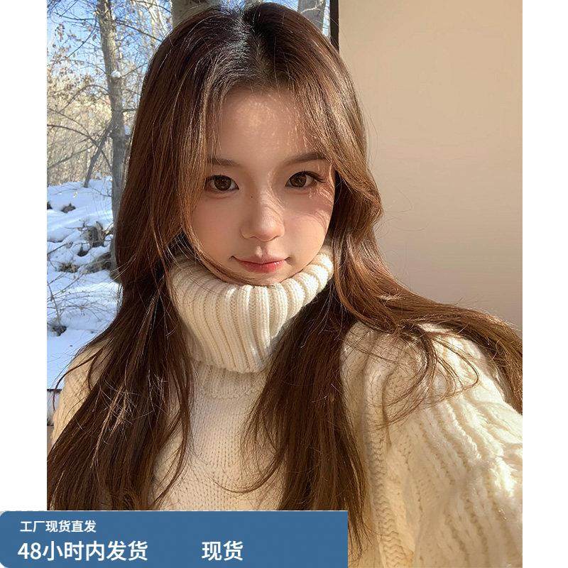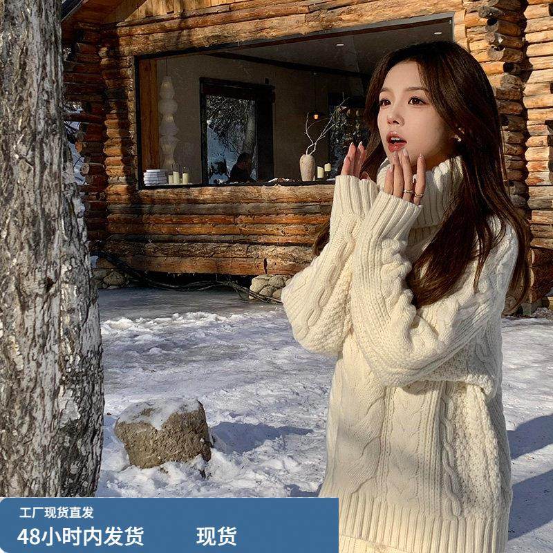 复古白色高领麻花套头针织衫毛衣女秋冬新款慵懒风显瘦打底衫上衣