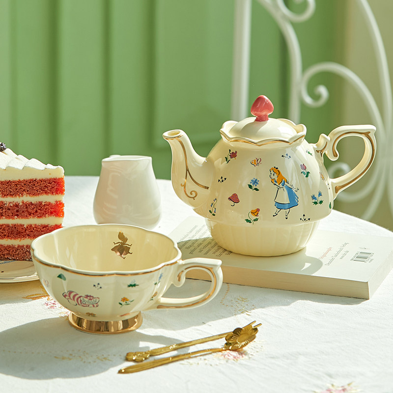 现货韩国爱丽丝茶壶茶具陶瓷爱丽丝下午茶具迪士尼茶壶陶瓷杯子