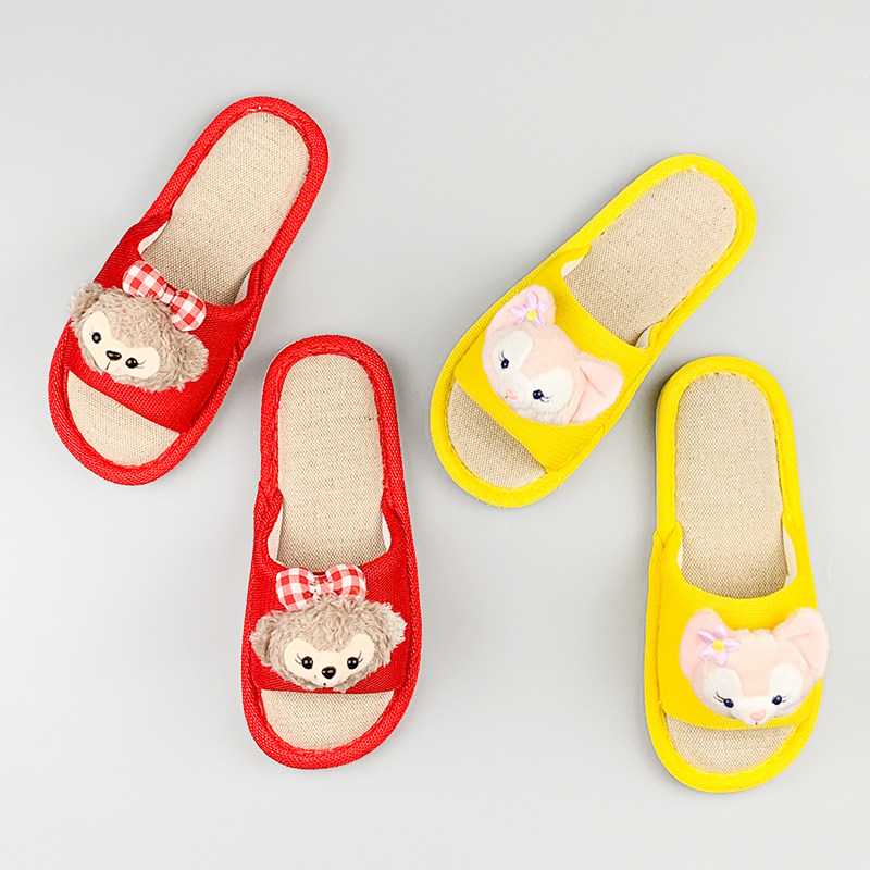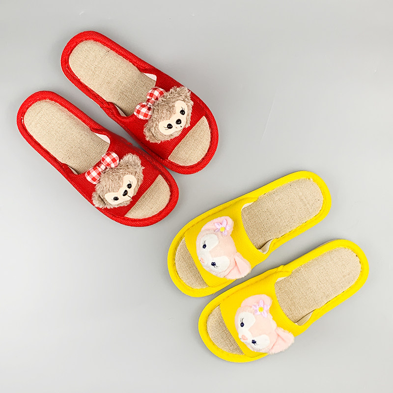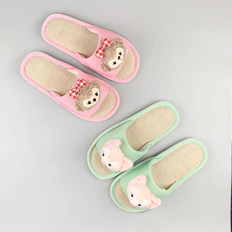 夏季可爱拖鞋居家室内女士情侣拖鞋地板鞋舒适亚麻玲娜贝尔卡通鞋