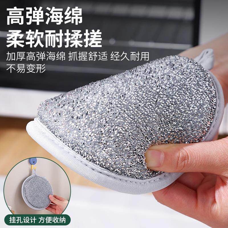 钢丝洗碗布不沾油不掉丝大号钢丝球厨房专用银丝抹布双面洗碗海绵
