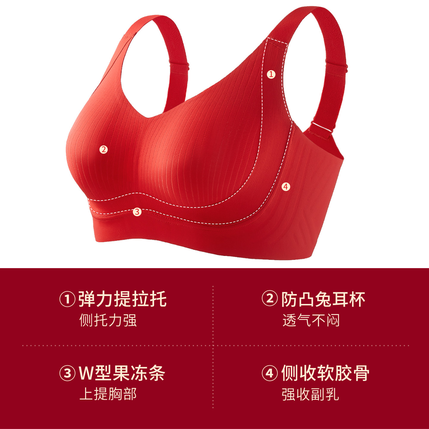千奈美红色内衣女本命年女大胸显小薄款文胸套装结婚新娘喜庆婚嫁