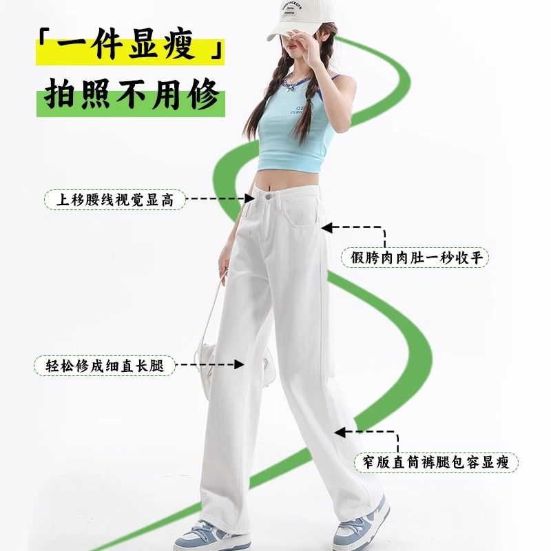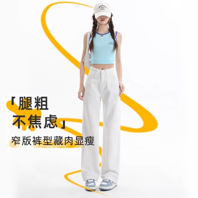 白色小个子直筒牛仔裤女夏季薄款高腰显瘦垂感拖地窄版阔腿裤