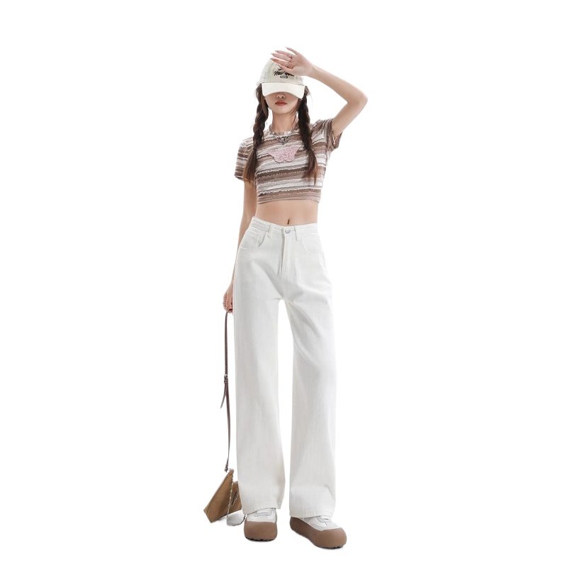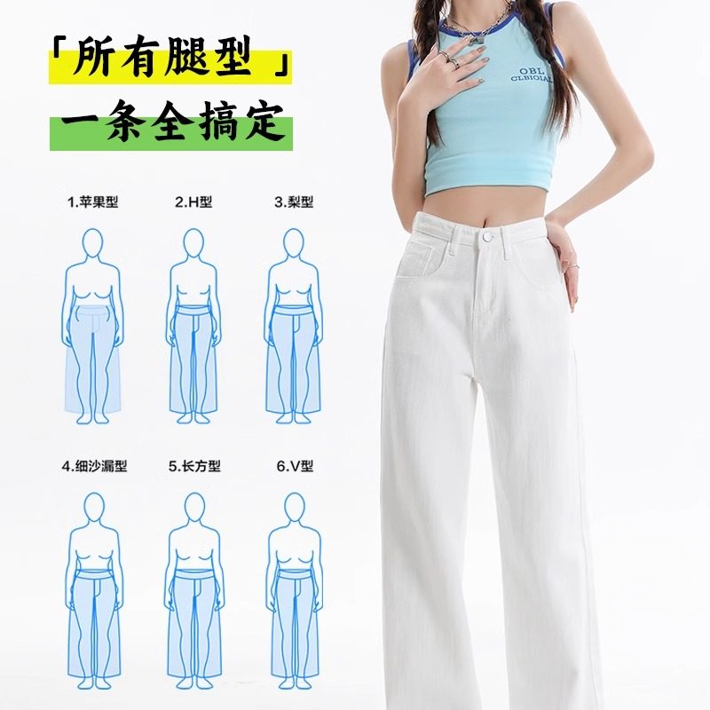 白色直筒垂感高腰显瘦窄版阔腿裤