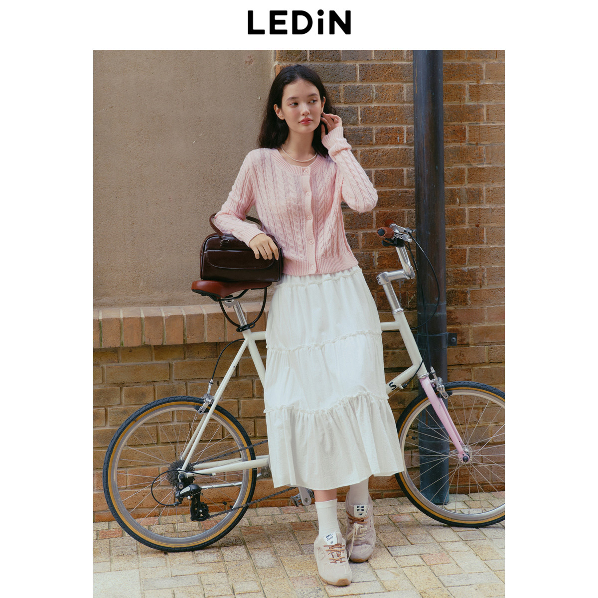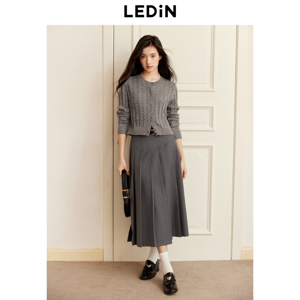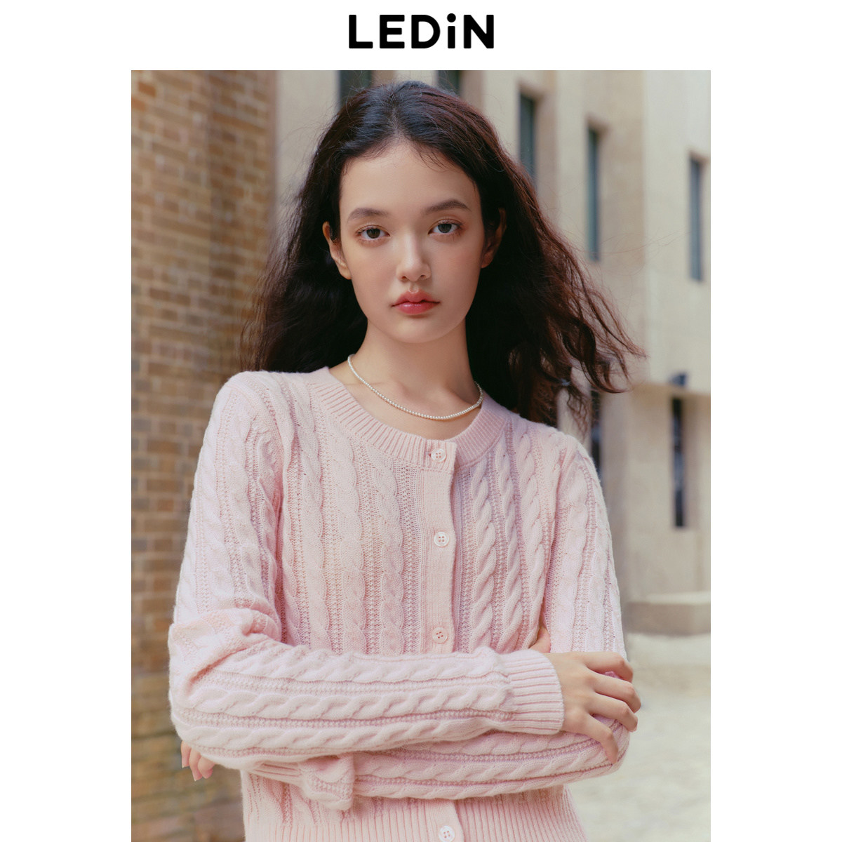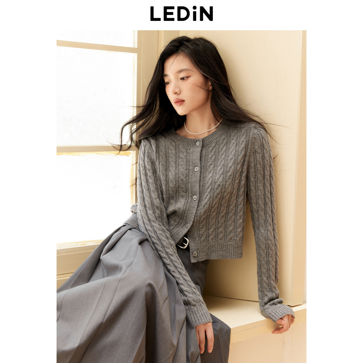 乐町圆领短款合体绞花针织线开衫女秋季新款百搭毛衫上衣