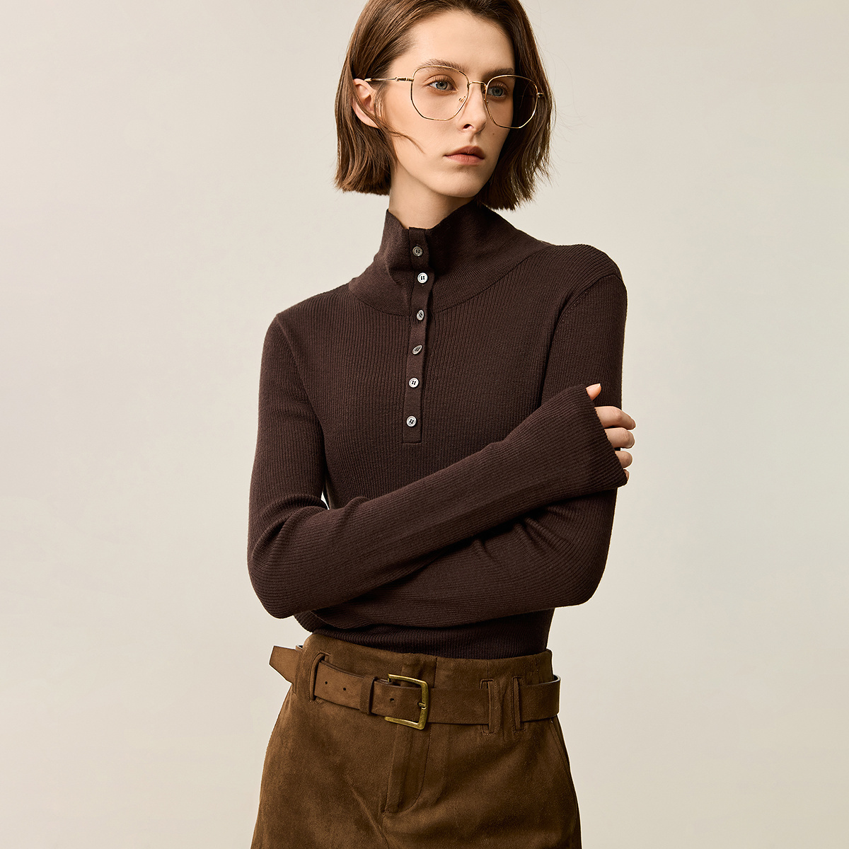 【100%绵羊毛】商场同款LILY2025冬新款女装高领弹力修身针织衫女