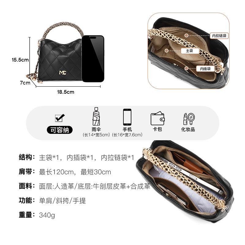 稻草人包包女包2025新款时尚单肩包链条菱格包百搭手提斜挎包正品