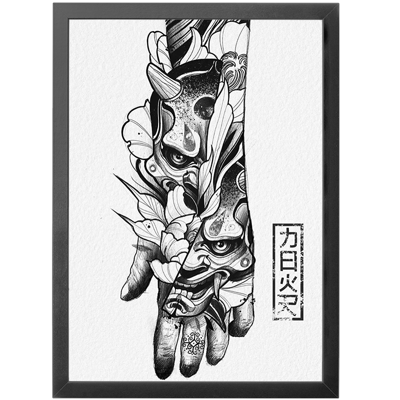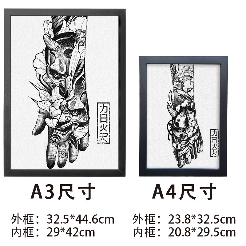 a4纹身海报框画装饰画传统黑灰手背刺青手稿玄关走廊墙壁背景挂画