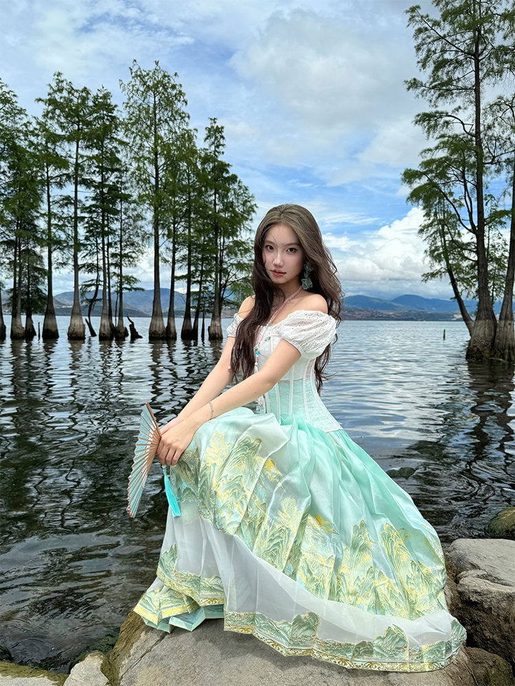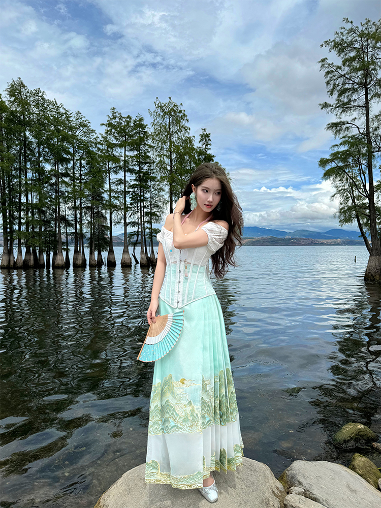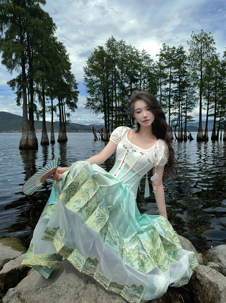 DandD1912丨祝余山纪初夏薄荷绿山水纱质重工拼接织金妆花马面裙