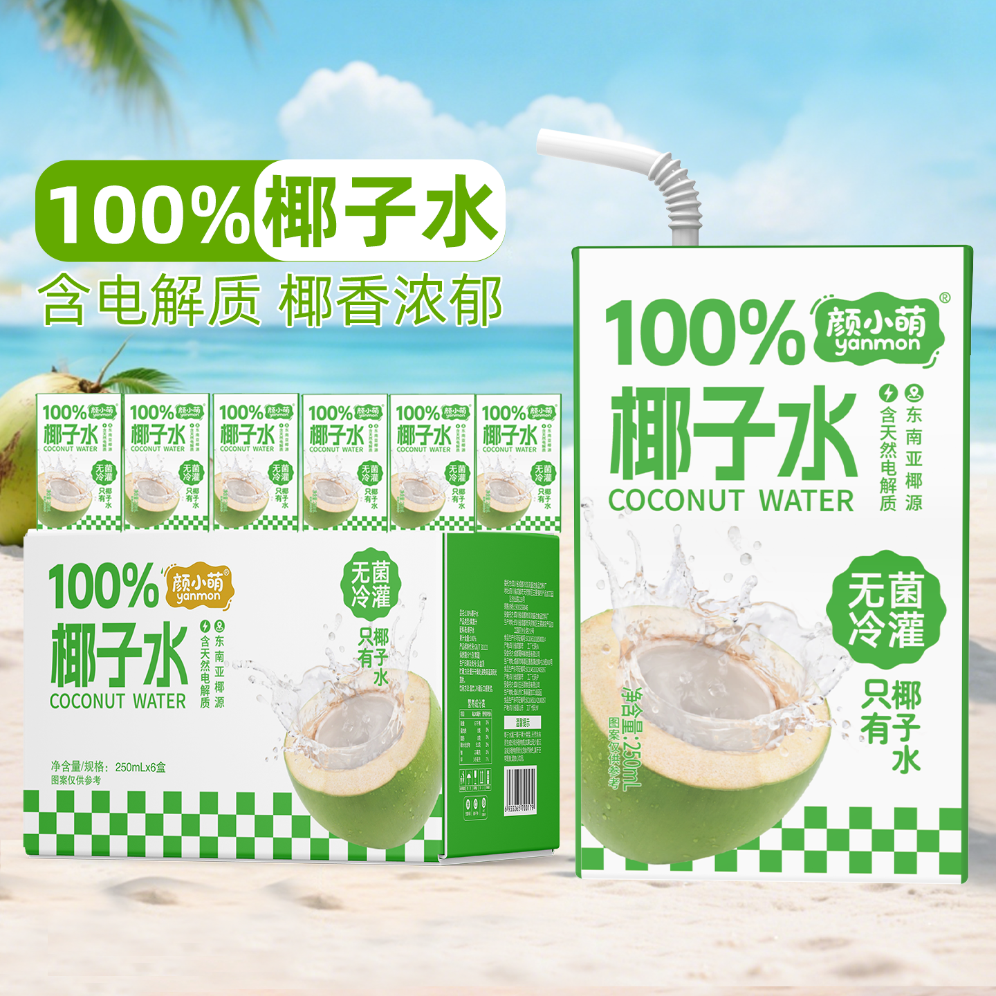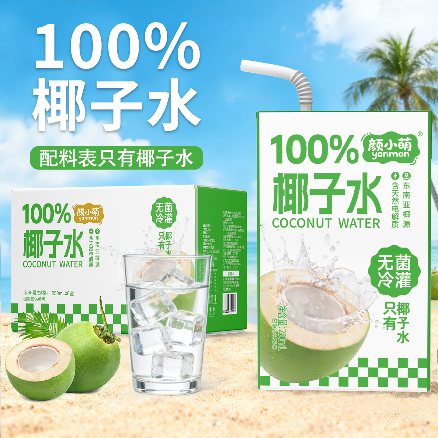 新品尝鲜100%椰子水250ml学生