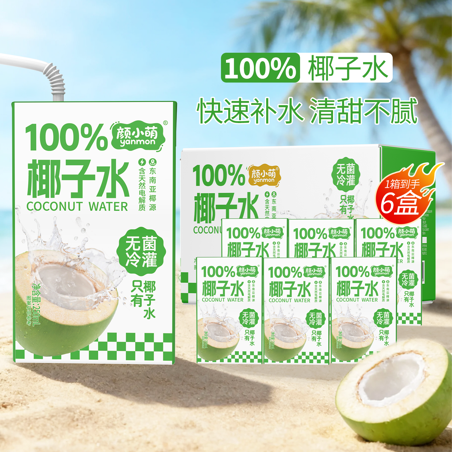 新品尝鲜100%椰子水250ml*10盒整箱喝电解质水无糖饮品果汁椰汁水