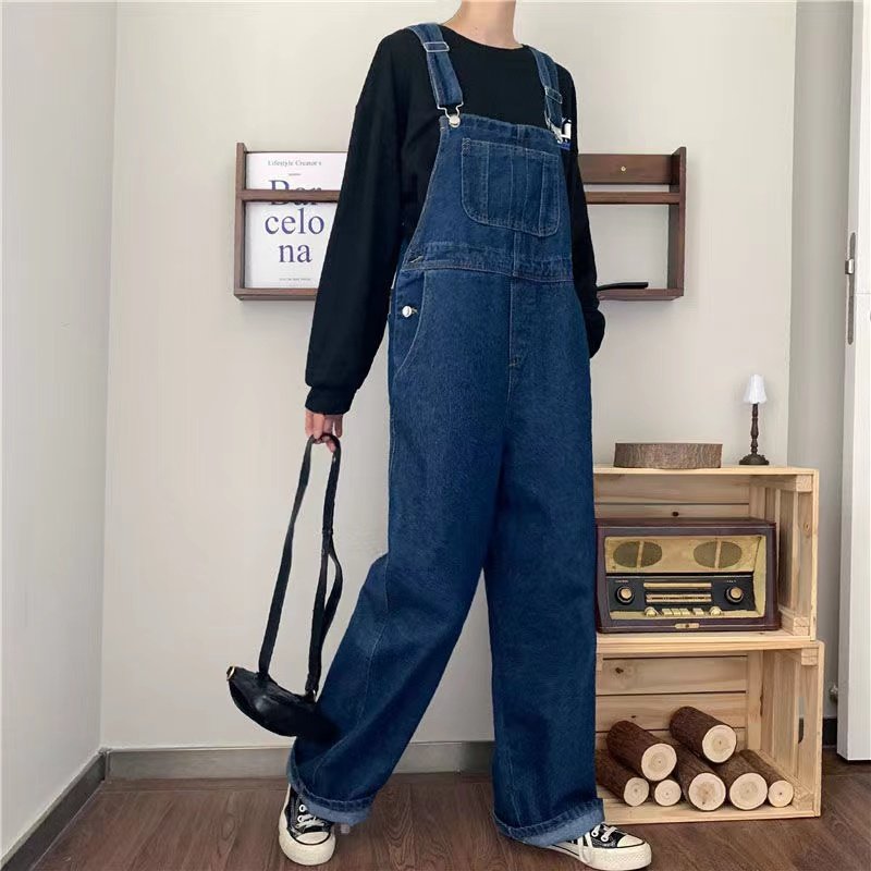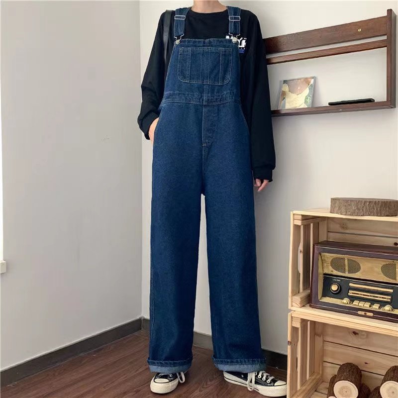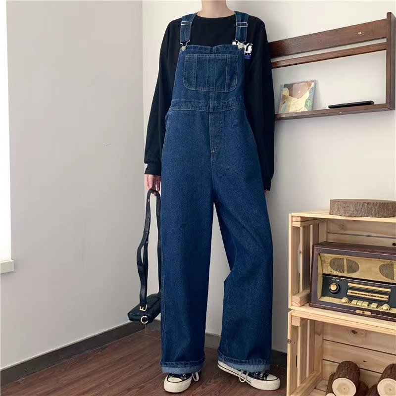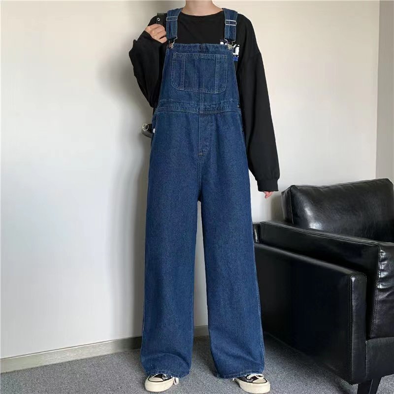 港风牛仔背带裤男2026春秋新款宽松直筒情侣潮流百搭阔腿连体裤子