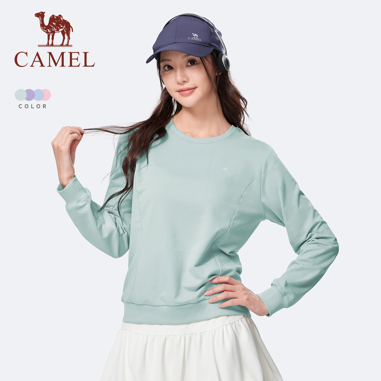 [双11预售]骆驼圆领长袖套头卫衣女宽松薄款素板休闲运动上衣男