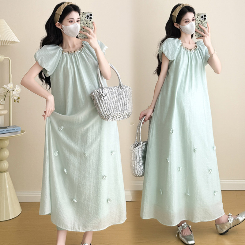 孕妇夏季气质法式中长款连衣裙