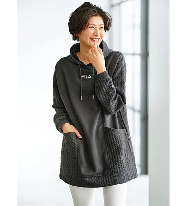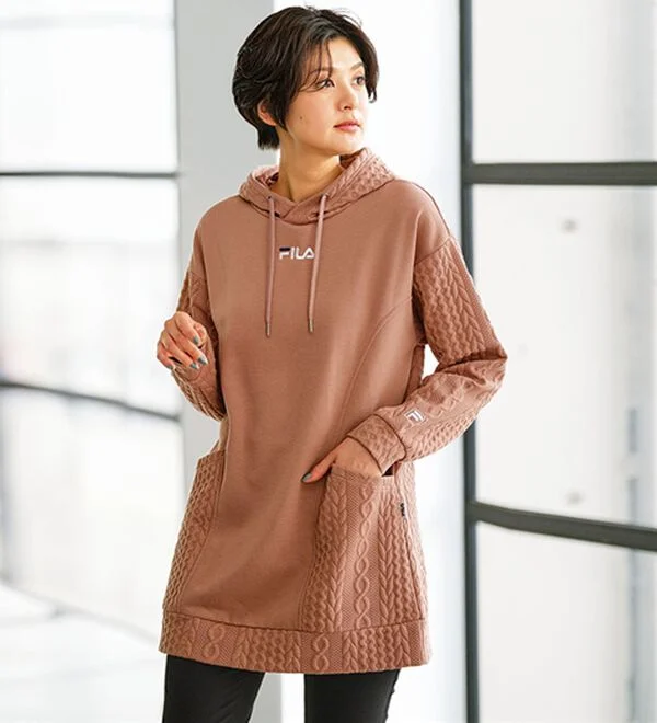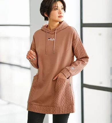 2024年秋季日本代购女士电缆花纹连帽中长款休闲宽松卫衣 有大码