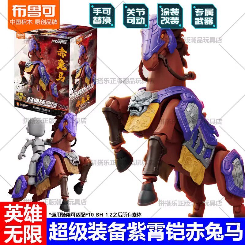 布鲁可积木人英雄无限经典版赤兔马通用坐骑圣凯吕布刘备拼装玩具