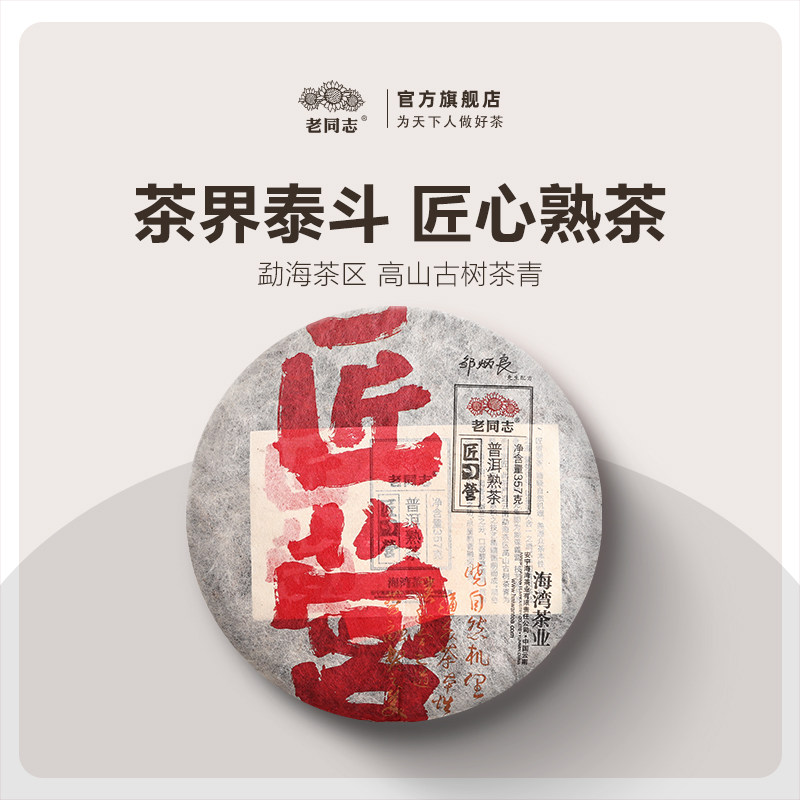 老同志普洱茶熟茶饼茶 2020年匠营熟茶357克熟饼
