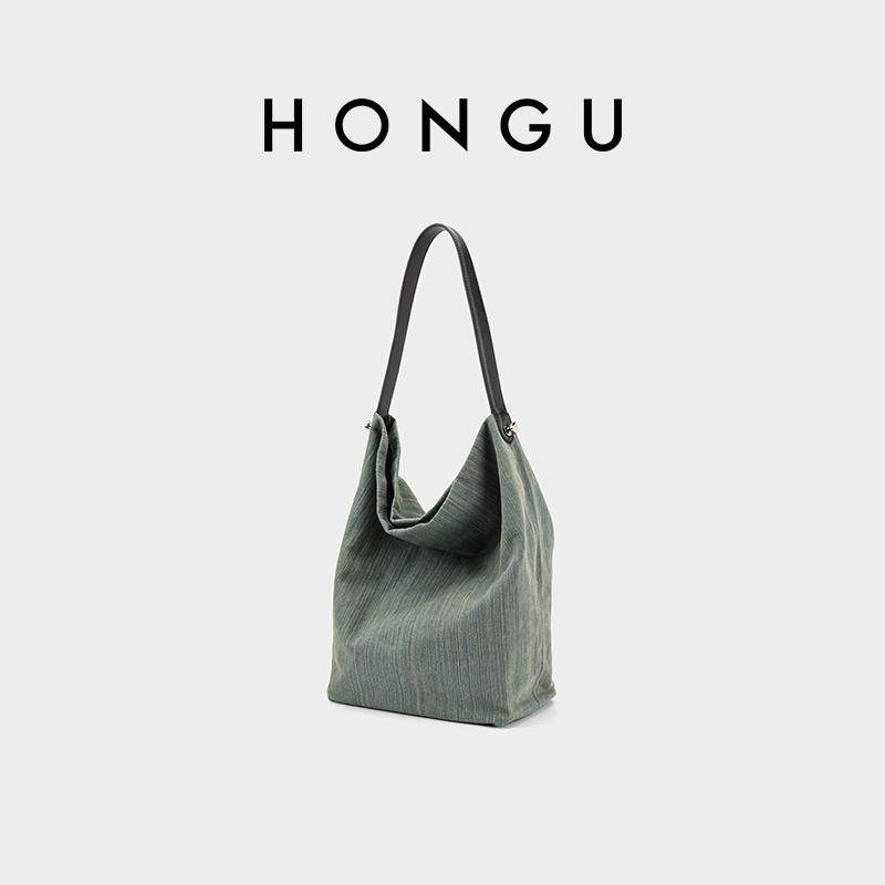 HONGU/红谷大容量单肩斜挎包包托特包百搭帆布包松弛感背包书包女