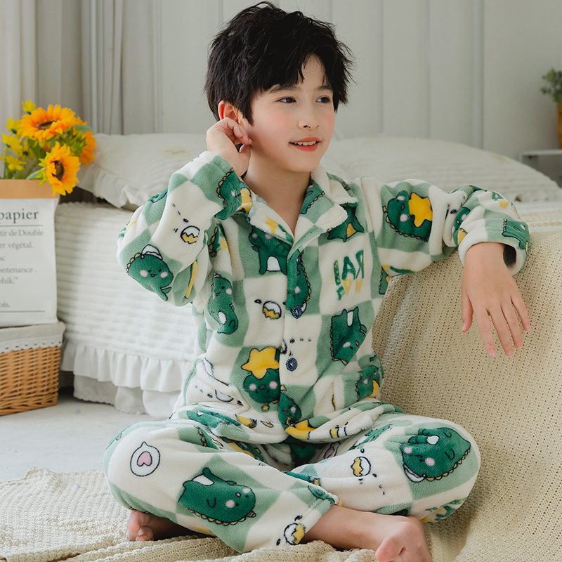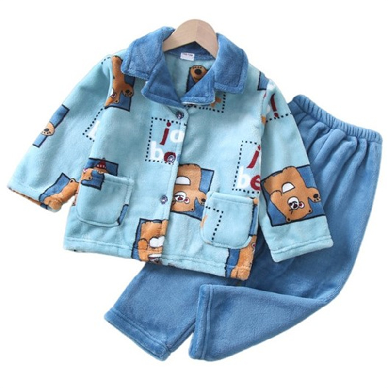 儿童法兰绒睡衣男童秋季加厚发热衣裤男孩珊瑚绒宝宝家居服女童