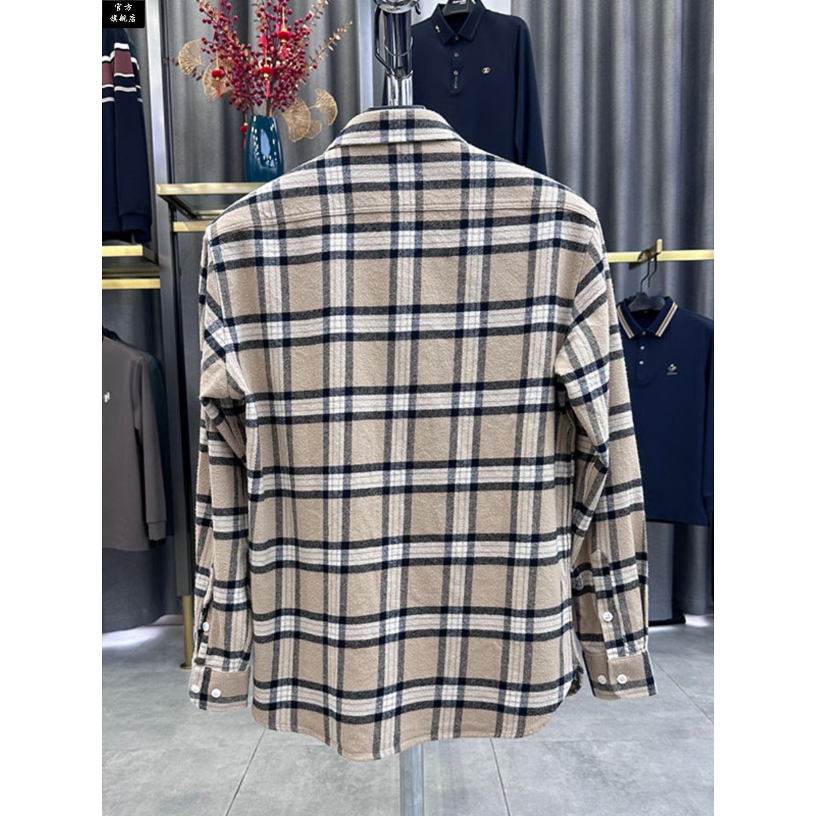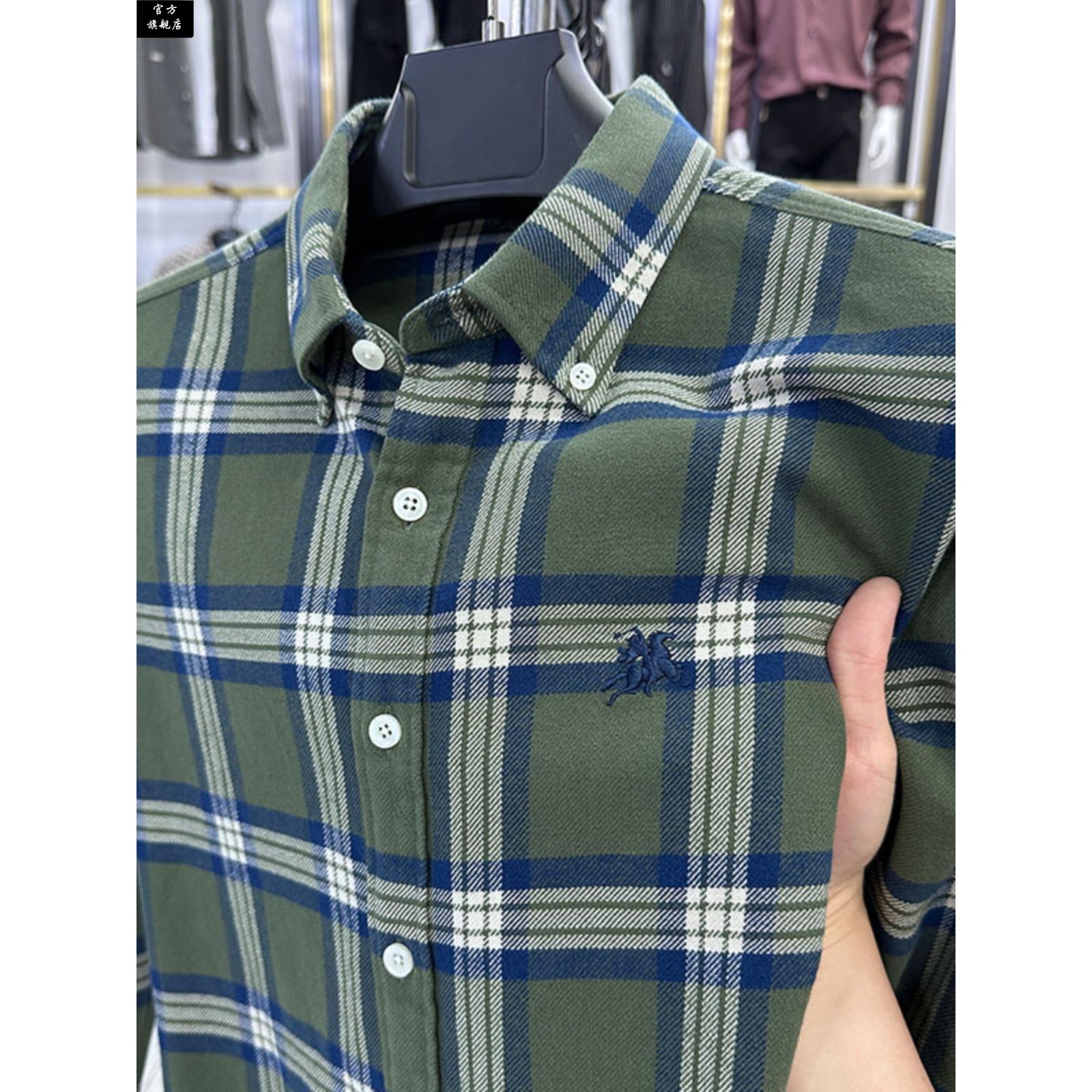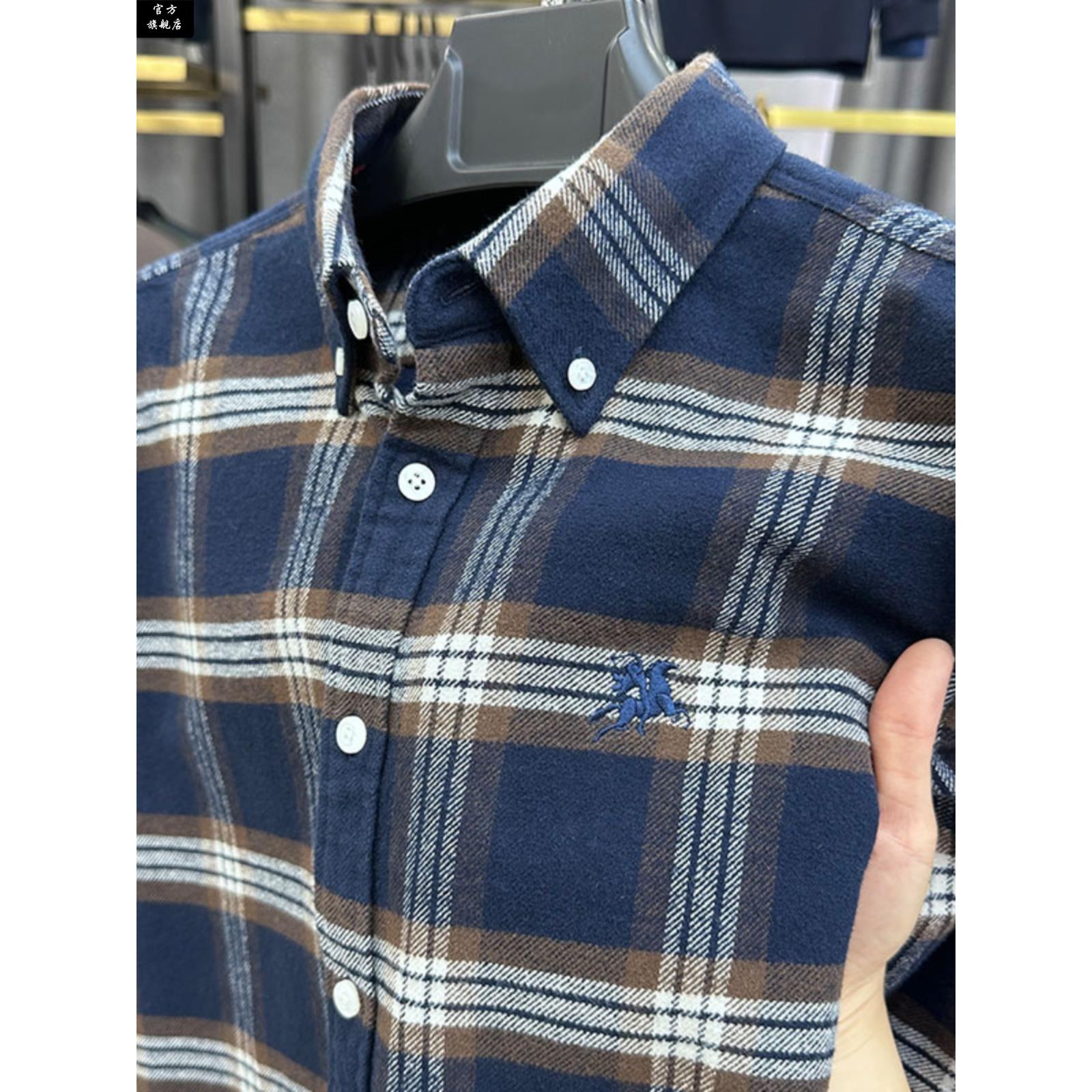 保罗官方秋季格子衬衫长袖男士衬衣外套男装春秋厚款磨毛纯棉上衣