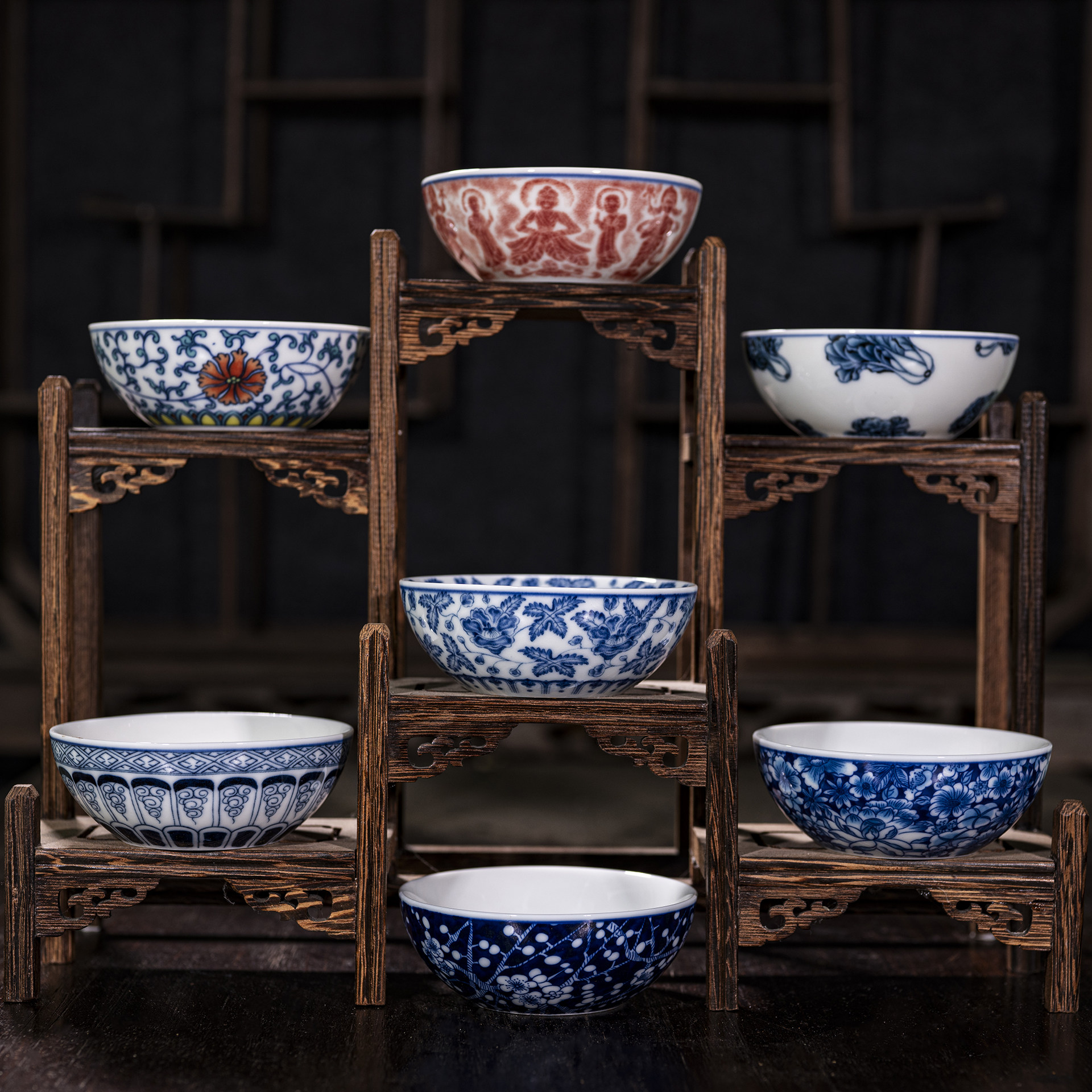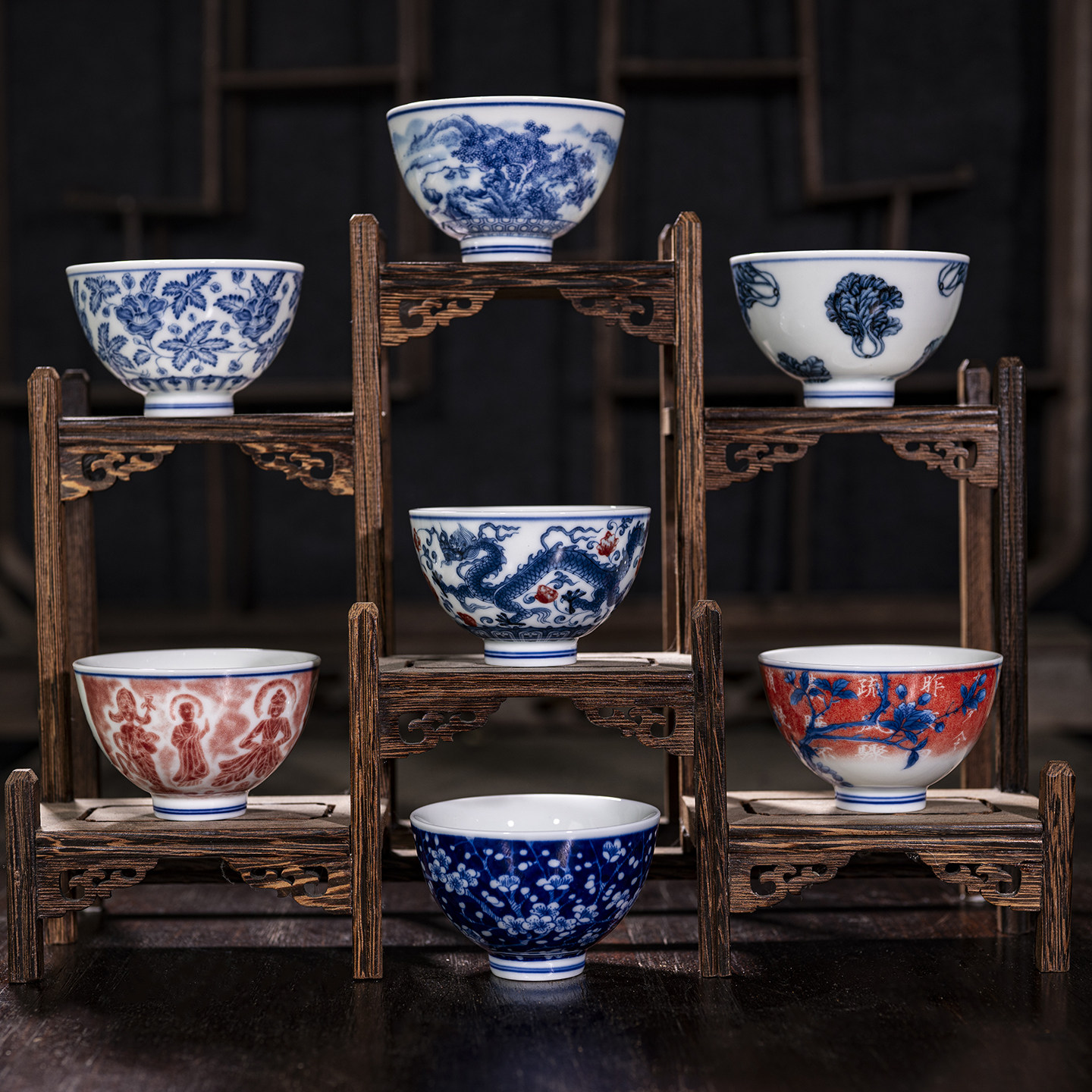 茶杯陶瓷茶碗小号品茗杯功夫茶具主人杯青花瓷釉下彩景德镇单个装